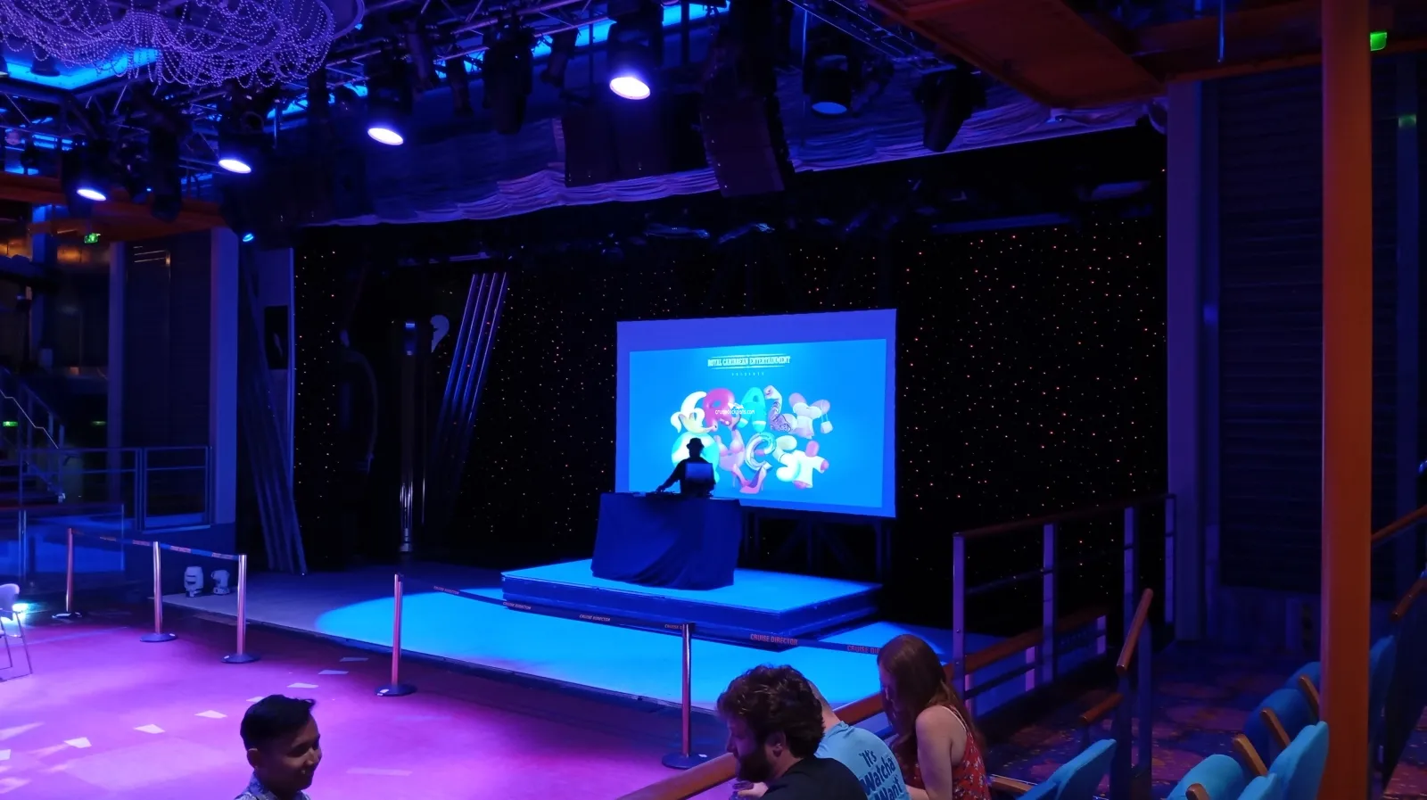 Seats 760 guests and is a multi-purpose studio complex filled with activity throughout the day from ice-skating to cooking demonstrations along with the ships ice shows and Quest audience participation game show.On Air Club