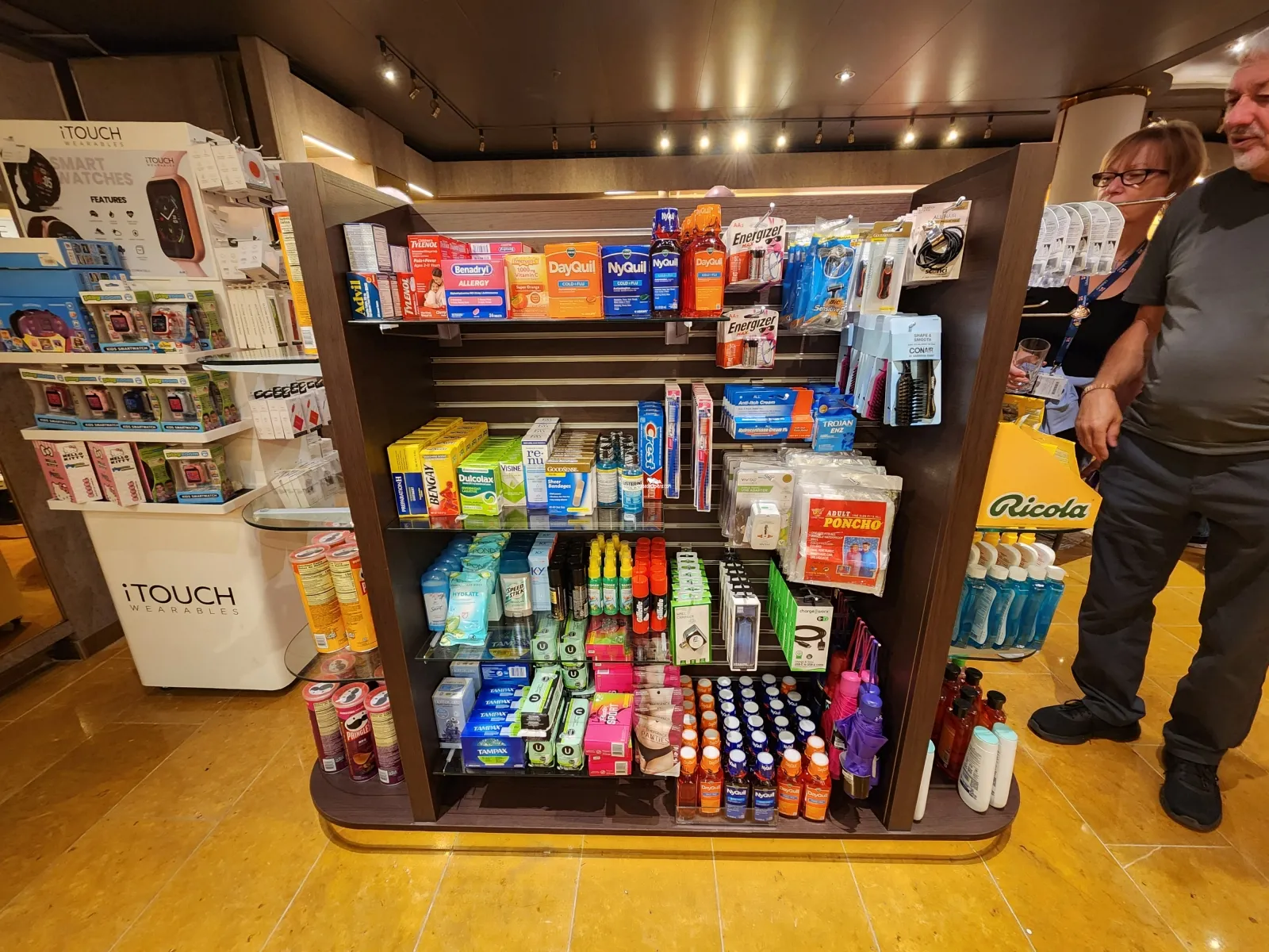 Multi-story atrium that spans the Main, Lower Promenade and Promenade decks. On first level is guest services, shore excursions and future cruise desk. There is also a bar and lounge area.Library