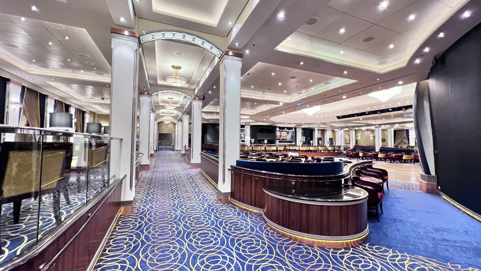 Named for her shipyard hull number, the two level disco is designed in a contemporary style and features both a DJ and a live band. It is the area open latest on the ship and hosts a number of memorable dancing themed nights from the 60s, 70s & 80s.Britannia Restaurant