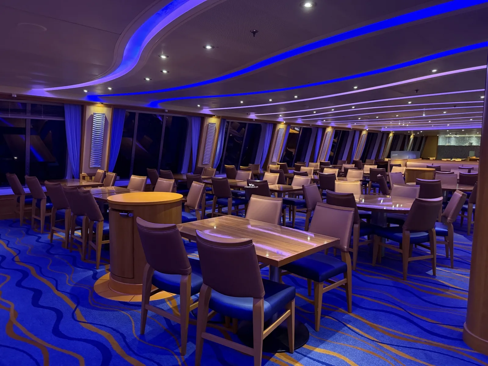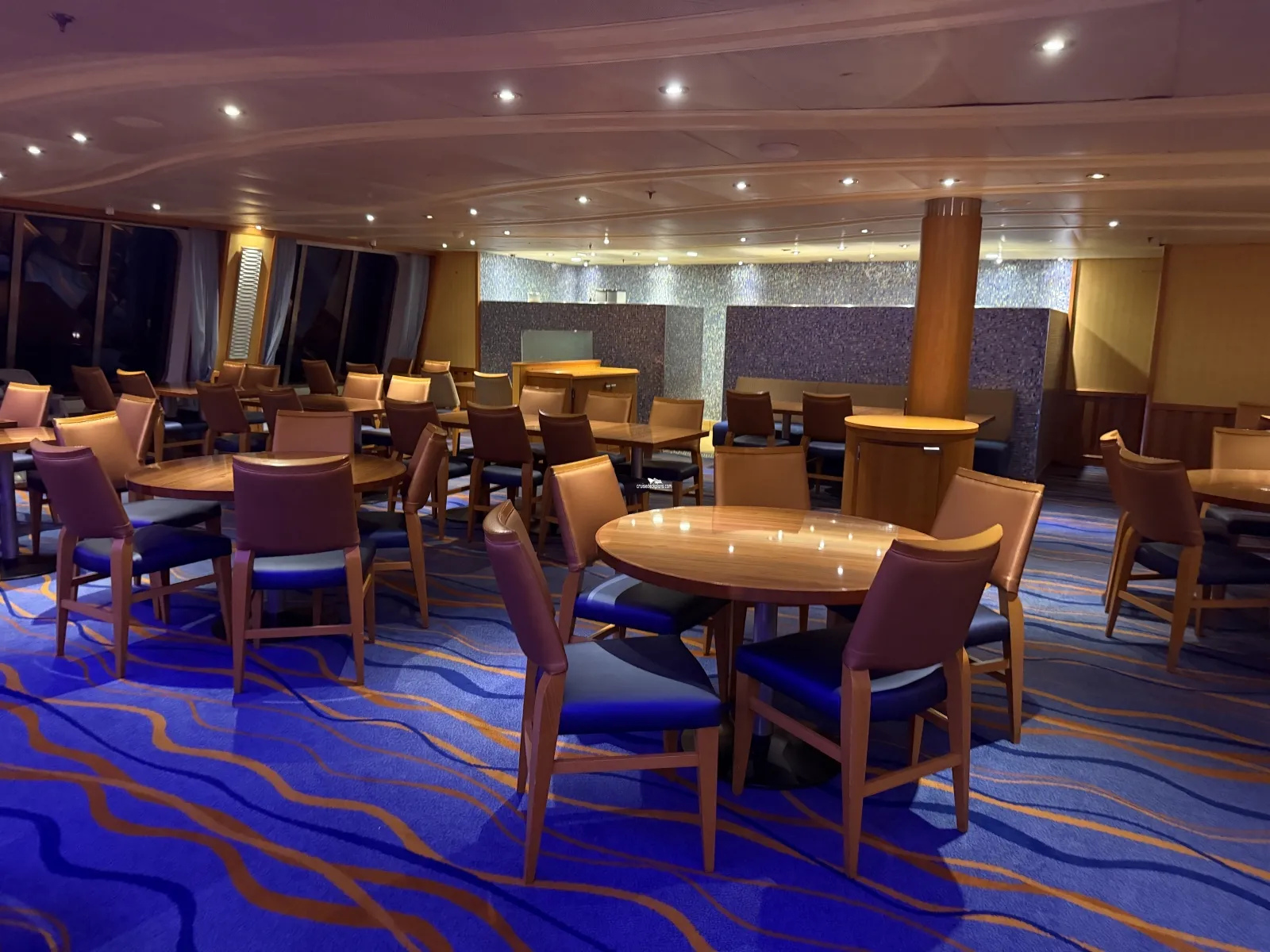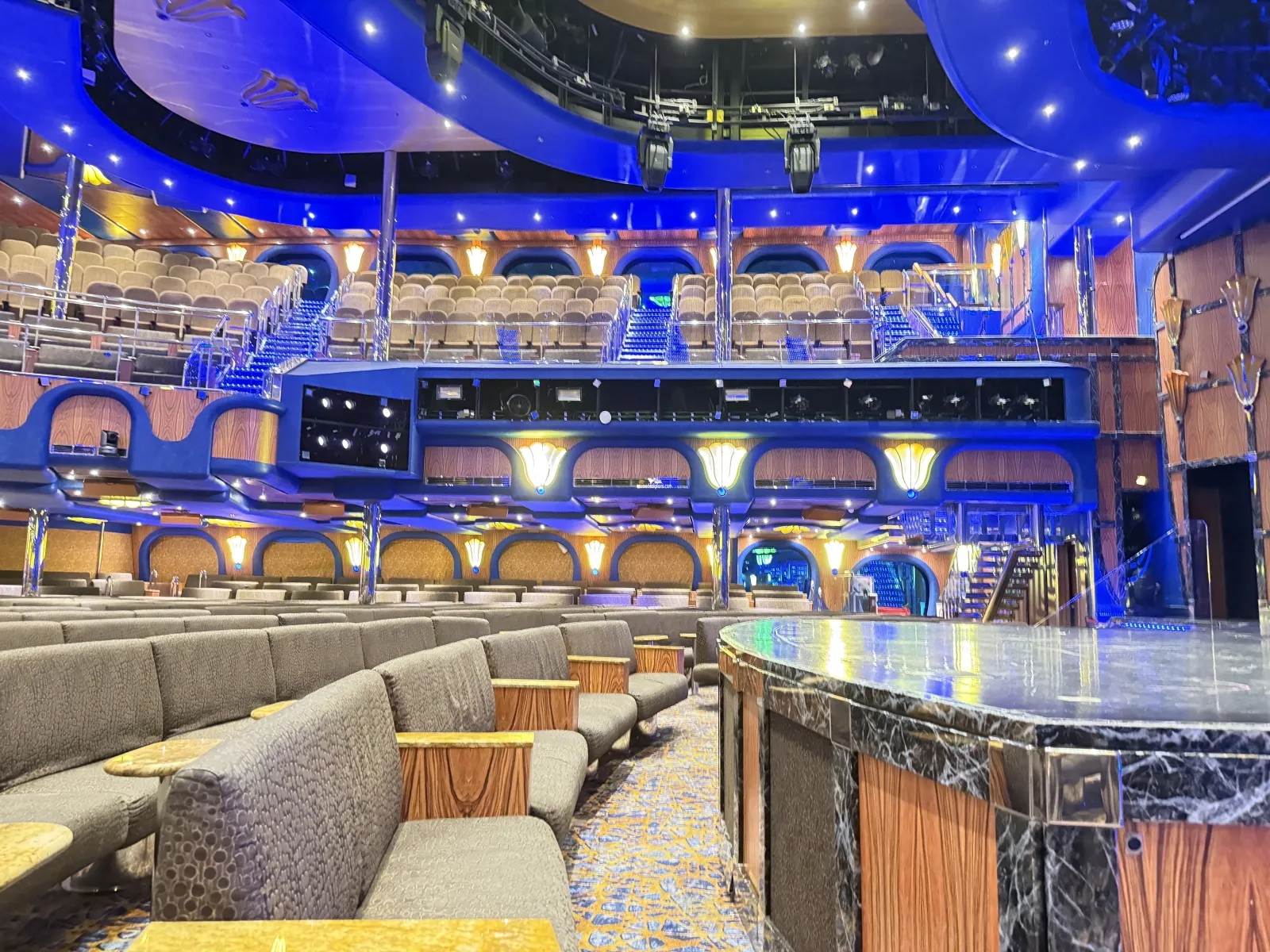Main show lounge that seats 1349 people. Three levels high. Also venue for bingo, seminars, audience participation games, dance classes, midnight shows. Many functions will have beverage service.Cabin Check Tool
