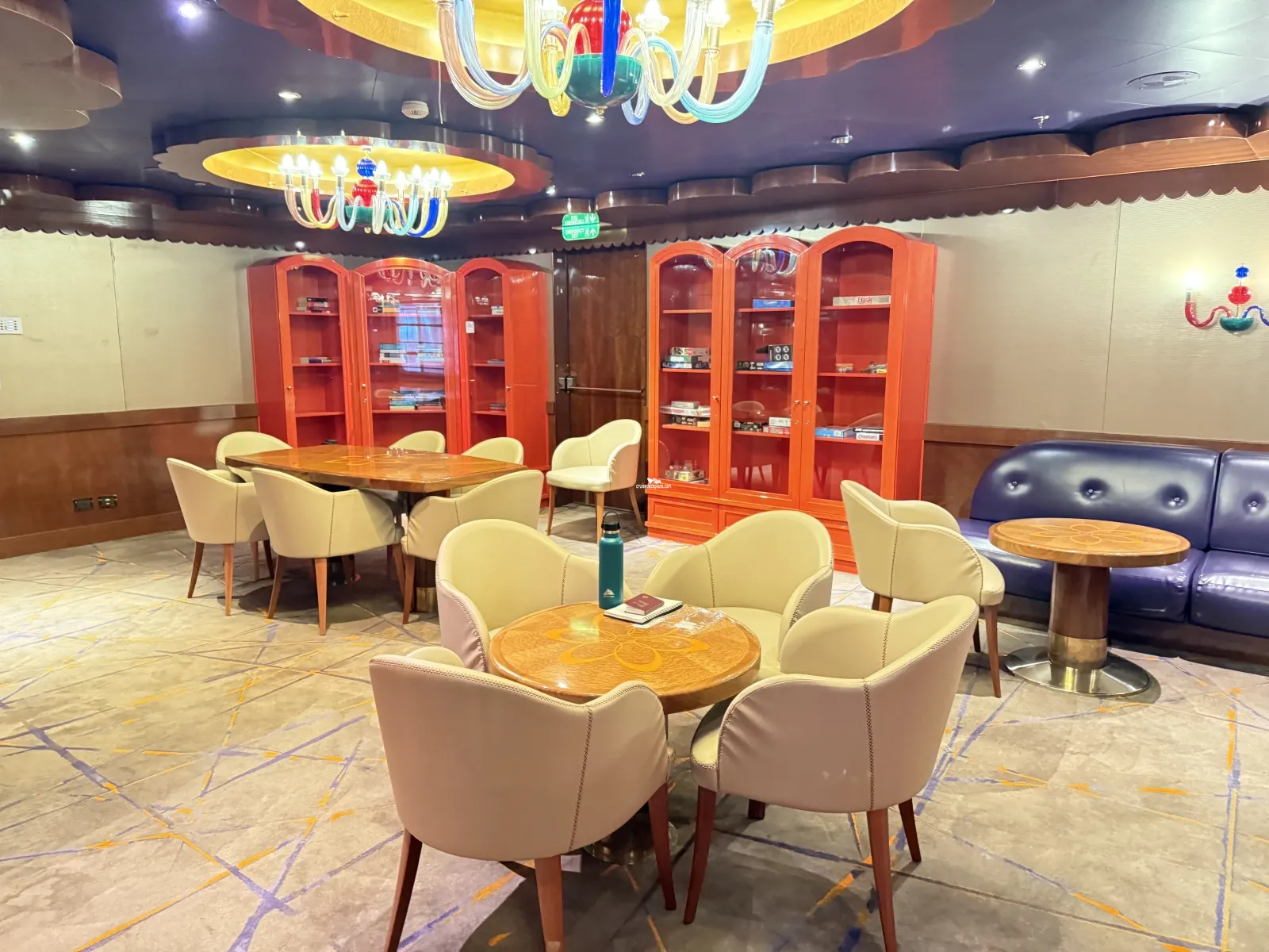 Main show lounge that seats 1349 people. Three levels high. Also venue for bingo, seminars, audience participation games, dance classes, midnight shows. Many functions will have beverage service.The Page Turner Library