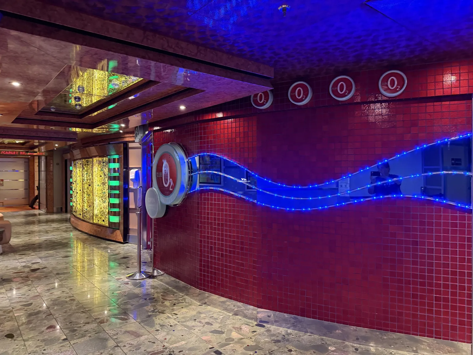 The smaller of the two main dining rooms, with seating for 744.Club O2