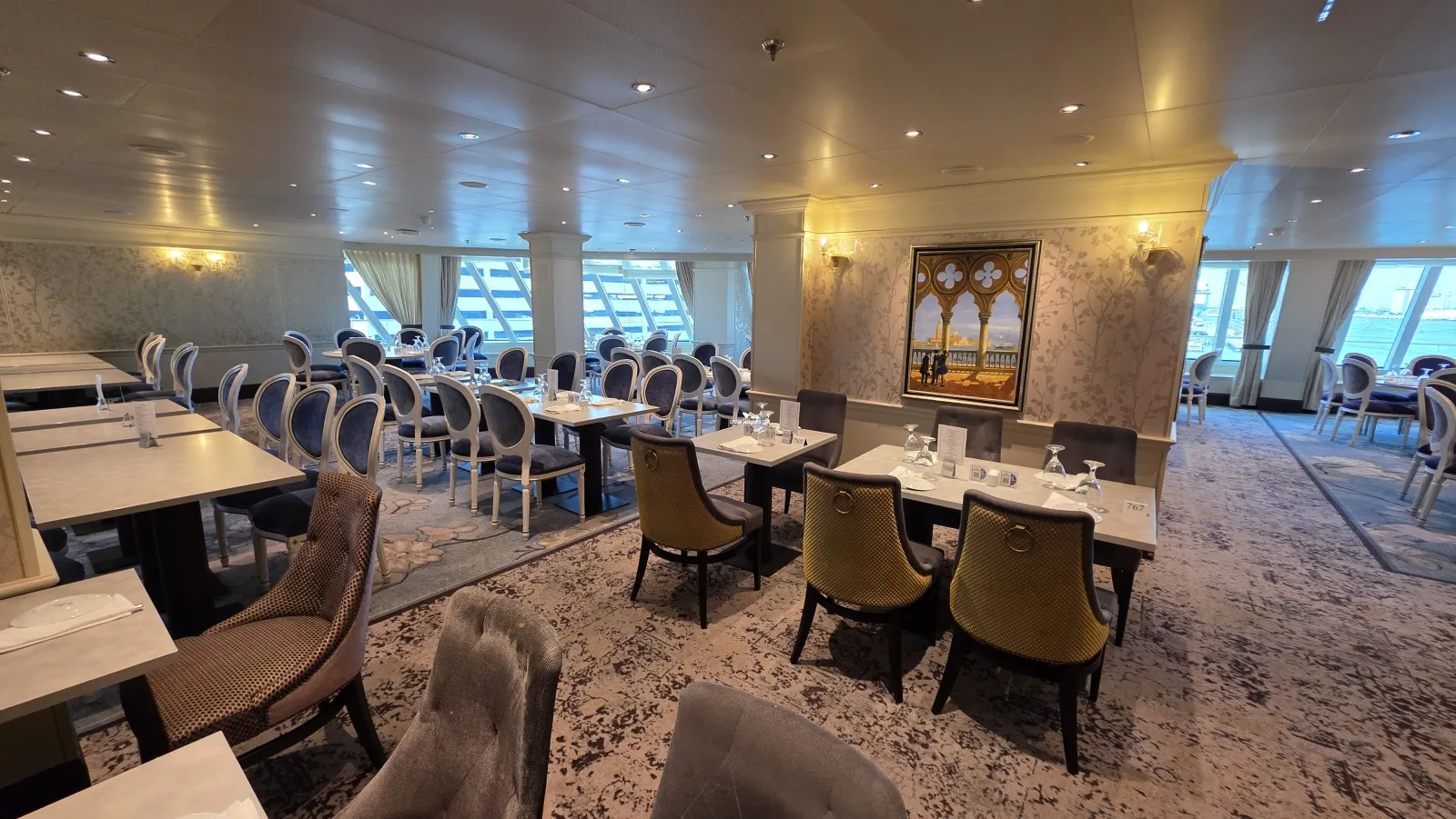 Located Aft Deck 3 and Deck 4. Sit-down wait staff service. Sea Days: open seating brunch: 8:30am-12:00pm (Deck 3 and 4). Port Days: open seating breakfast: 7:30am-9:30am; hours may vary due to port arrival (Deck 3). Sea Days: Tea Time: 3:00pm-4:00pm (Deck 4). Open for dinner - Your Time open seating: 5:45pm-9:30pm (Deck 3 and 4)Limelight Lounge