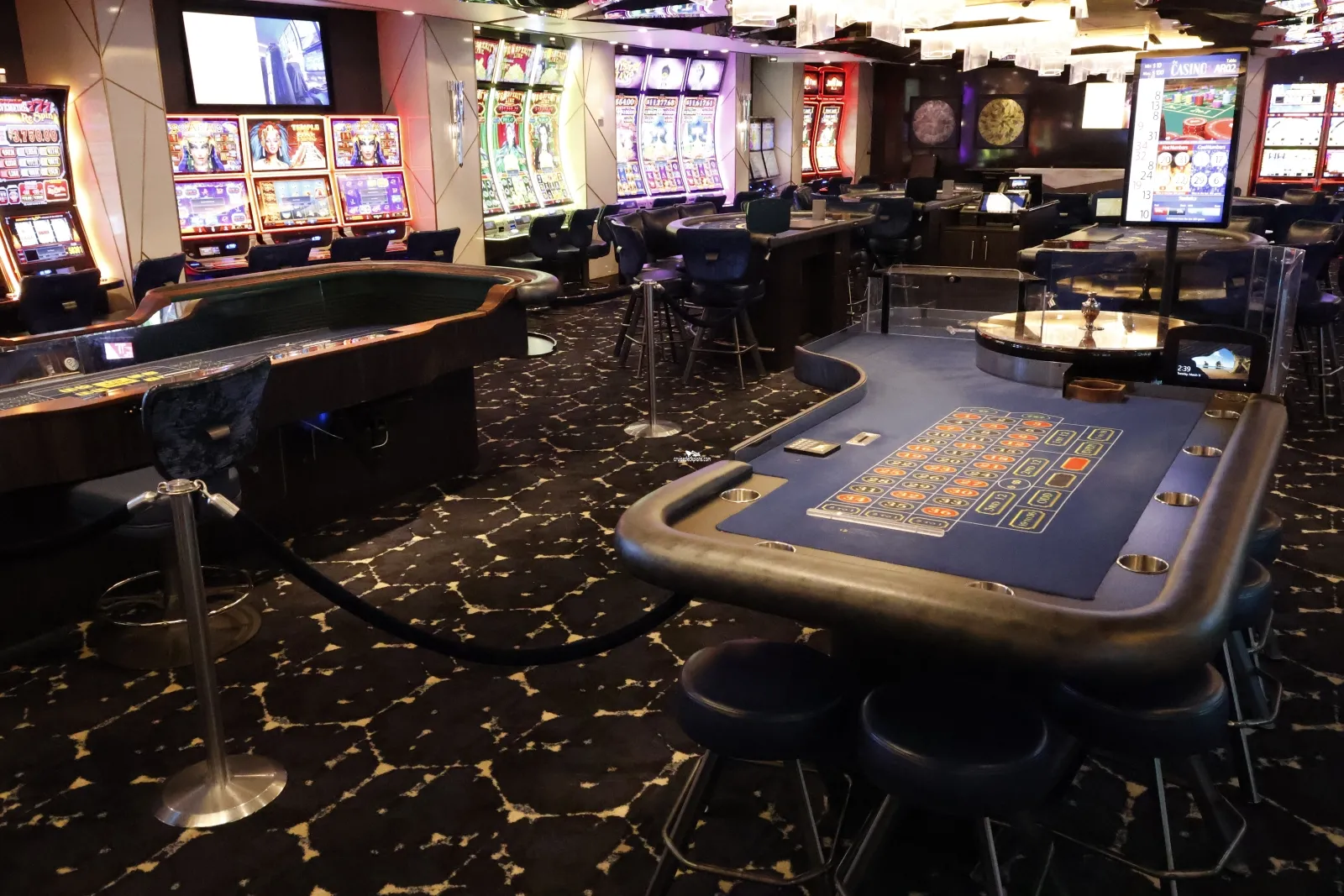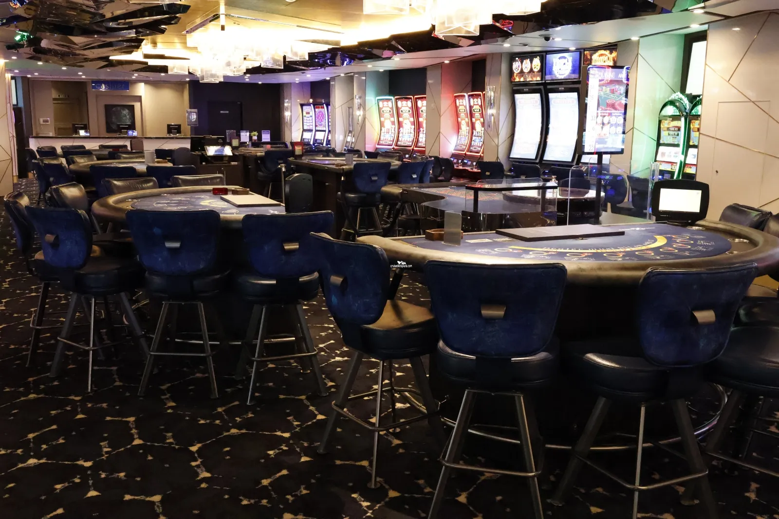 Three level high main theater where the stage extends into the audience. A duo-directional rotating platform rasises almost 7 feet above the stage. There are also two rotating staircases, 10 synchronized panoramic screens, 16 video mapping laser projectors, aerial performance rigging.The Club