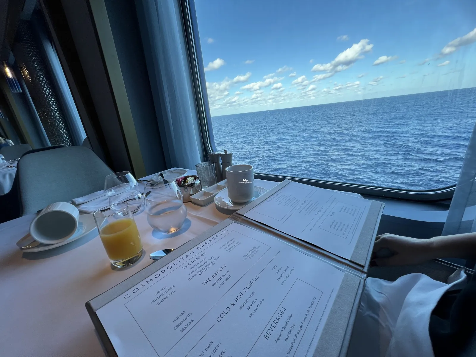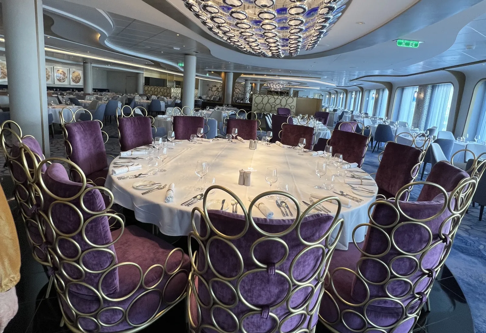 Mediterranean Style Dining. Seats 342 and serves Breakfast, Lunch (on sea days) and dinner. Represents Celebrity's Greek heritage designed by Patricia Urquiola with the main focus on seafood and features simple, clean dishes that celebrate the food and beverages in the Mediterranean region.Le Grand Bistro