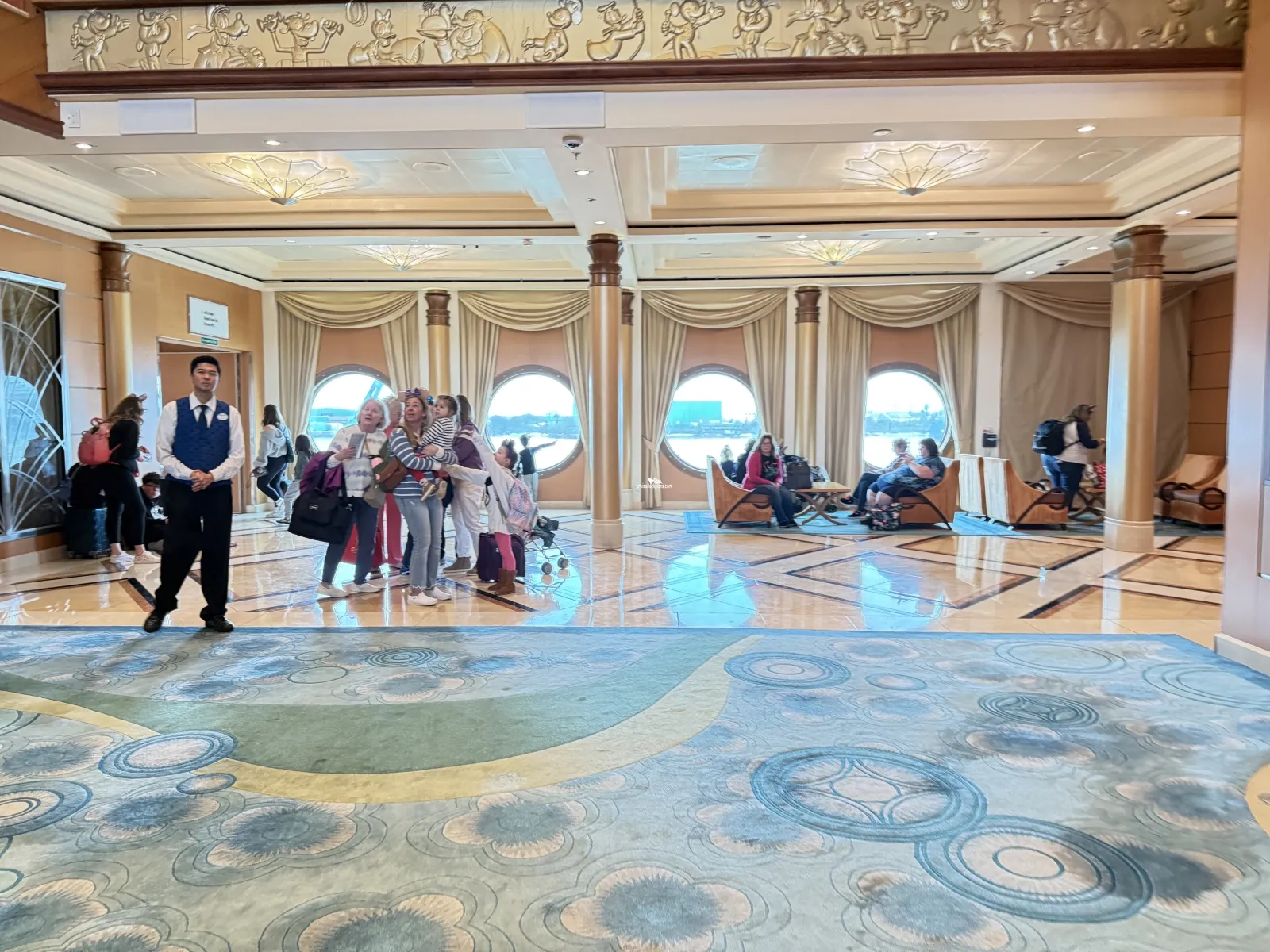Ships main atrium. On first level is guest services desk and shore excursion desk.Art Gallery