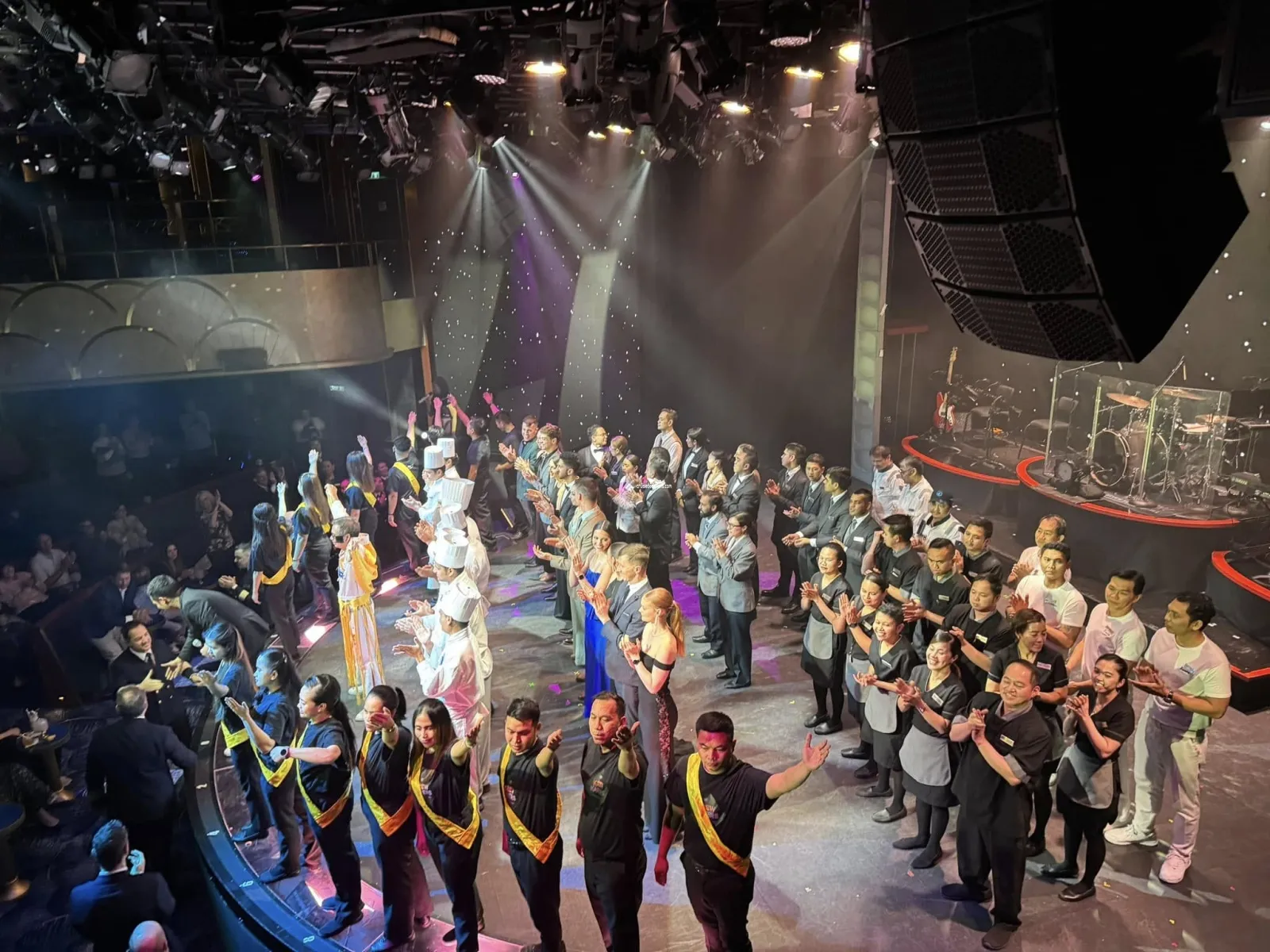 Main show lounge that is 2 levels high. The theater has tiered seating.Boutique