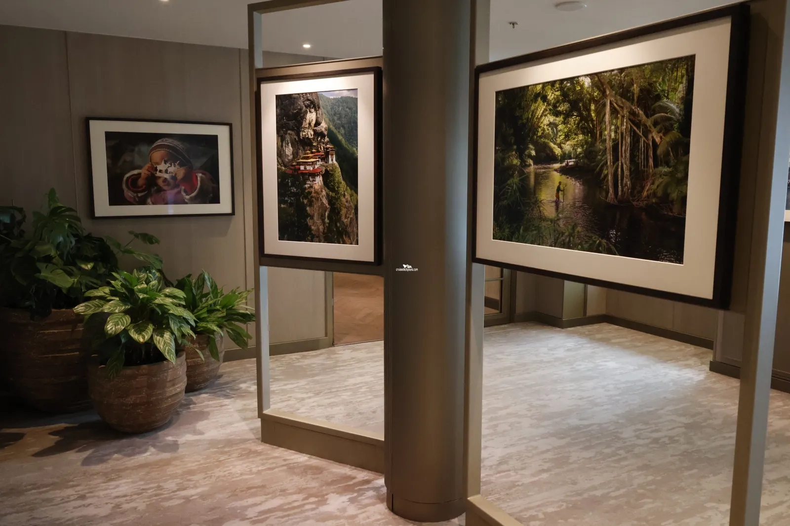 Two deck high lounge featuring the grandeur and magic of music and theatre. The experience of being transported by performance. A place where the arts of theatre and music meet with full-scale productions and feature films. Belle-epoque style cabaret seating, with intimate tables and chairs subtly placed between the rows of comfortable tiered banquettes.Atrium