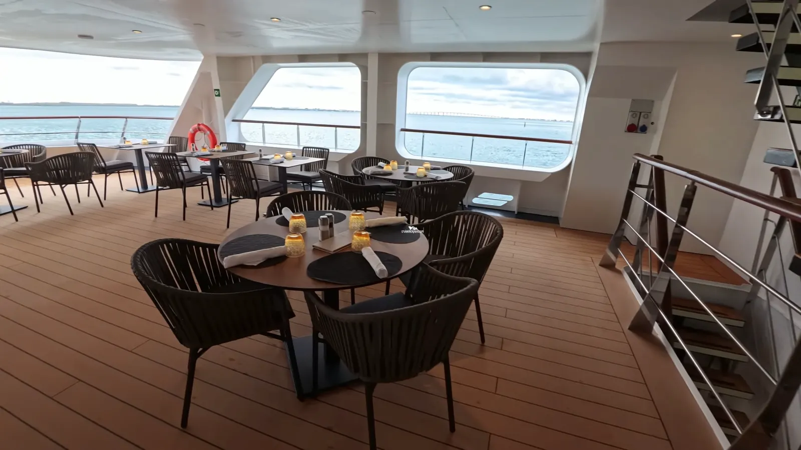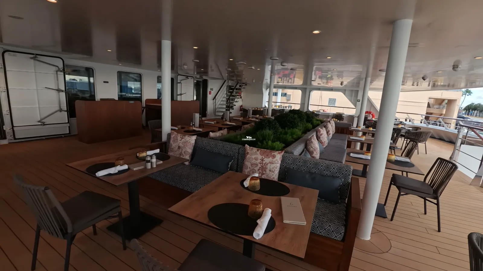 This tool will help you see what is on the deck above and the deck below your stateroom. Don't be surprised by loud chair scraping noise above you.