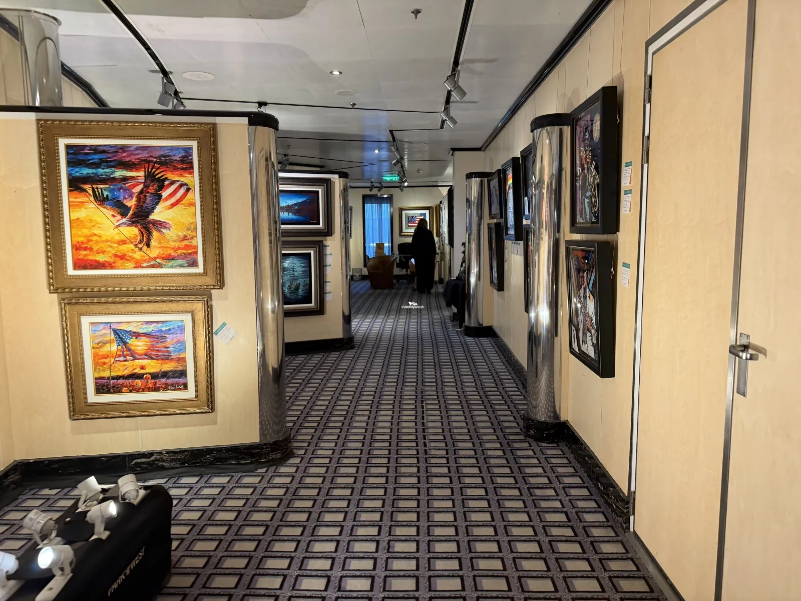 Displays a range of artwork which can be viewed and some pieces bought during the Champagne Art Auctions held on board the ship.The Plaza Cafe