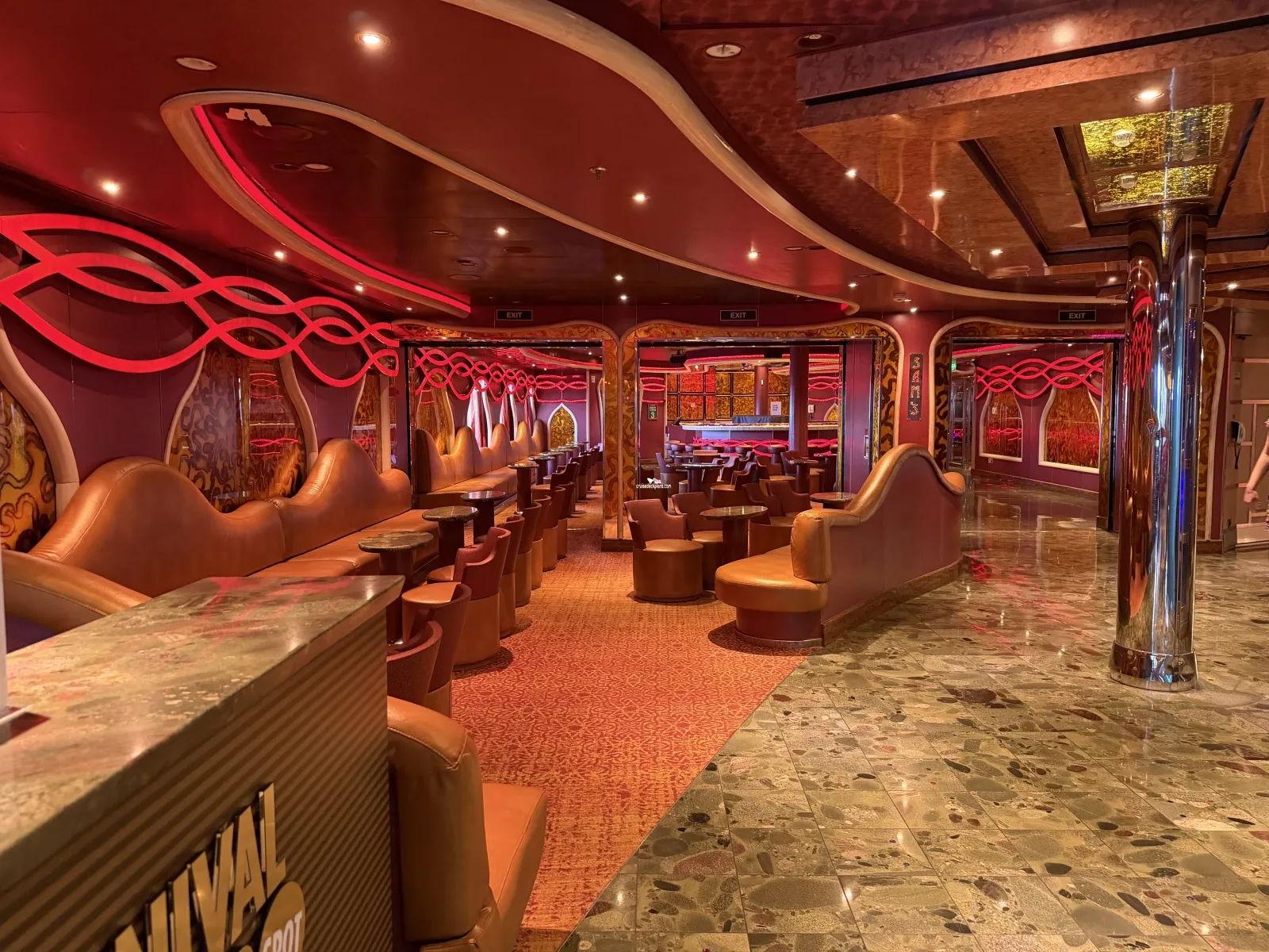 The ship's dance club that has a large dance floor and seating area and its own bar and resident DJ.The Collection