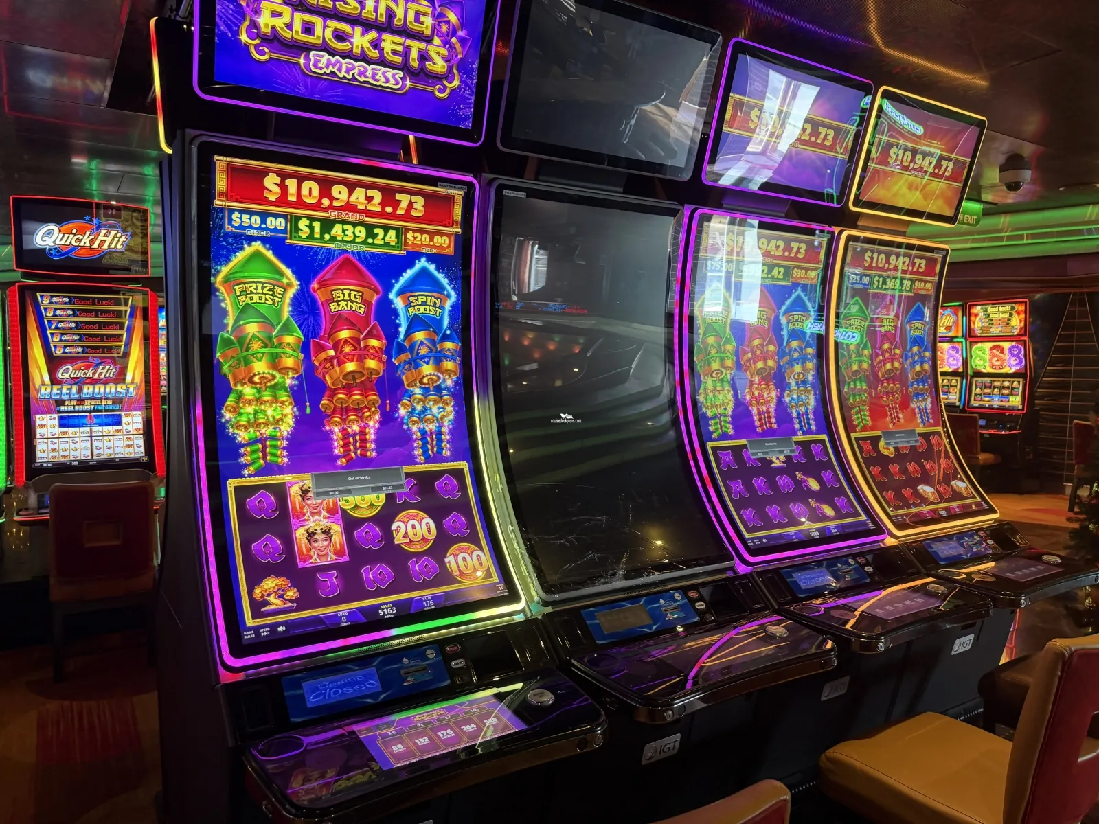 Outside promenade deck that circles the ship and has hot tubs and outside lounge areas.Jackpot Casino