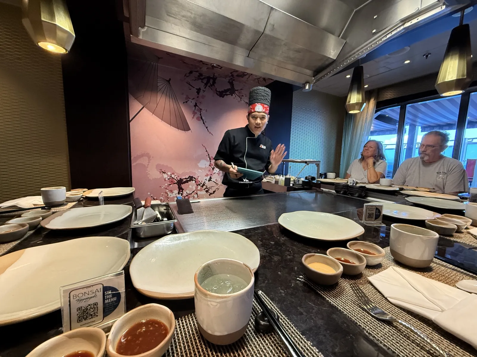 The ships alternative reservation only restaurant that specializes in steaks and seafood. Includes full bar on the inside and outdoor seating for dining al fresco. Sit down waiter service and reservations are recommended.Bonsai Sushi