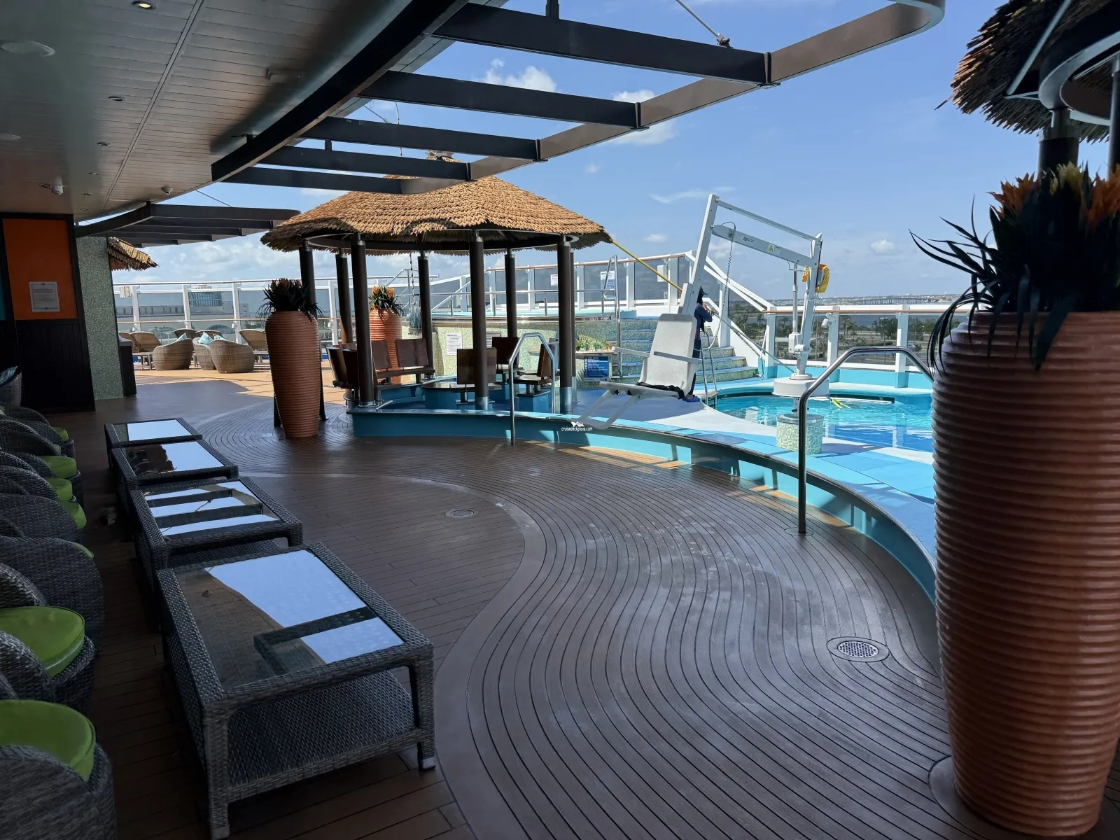 The ships alternative reservation only restaurant that specializes in steaks and seafood. Includes full bar on the inside and outdoor seating for dining al fresco. Sit down waiter service and reservations are recommended.Havana Pool