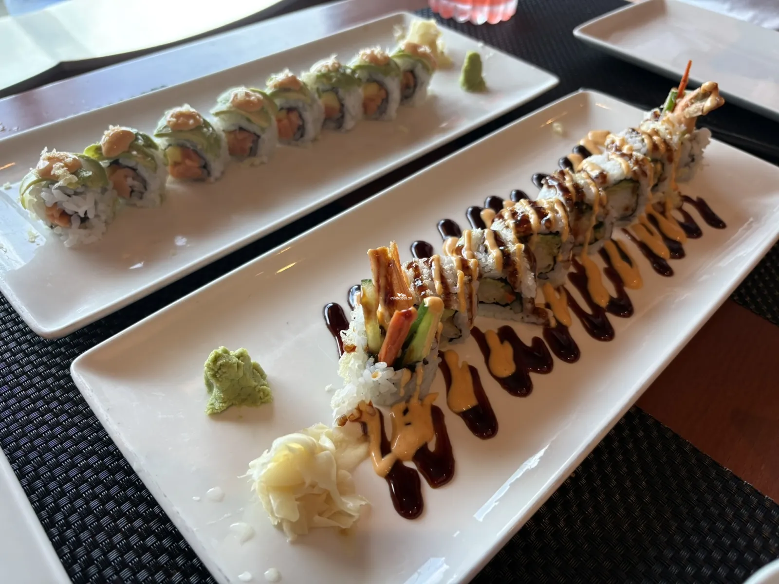 The ship's wine bar which allows guests to try a wide range of wines from a collection of both familiar and unknown wines from around the world.Sushi on Five