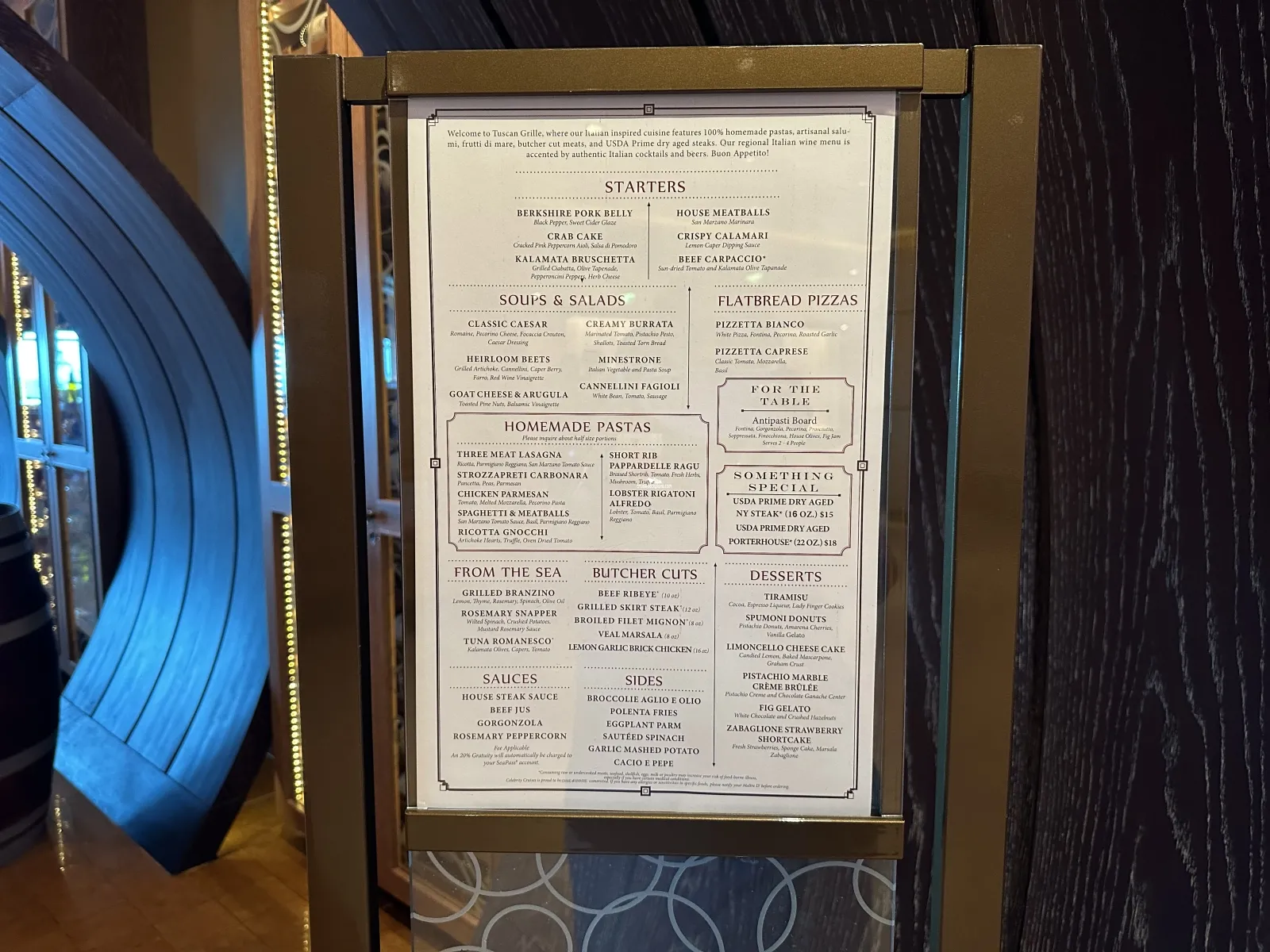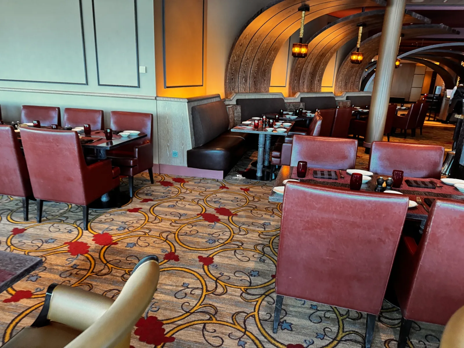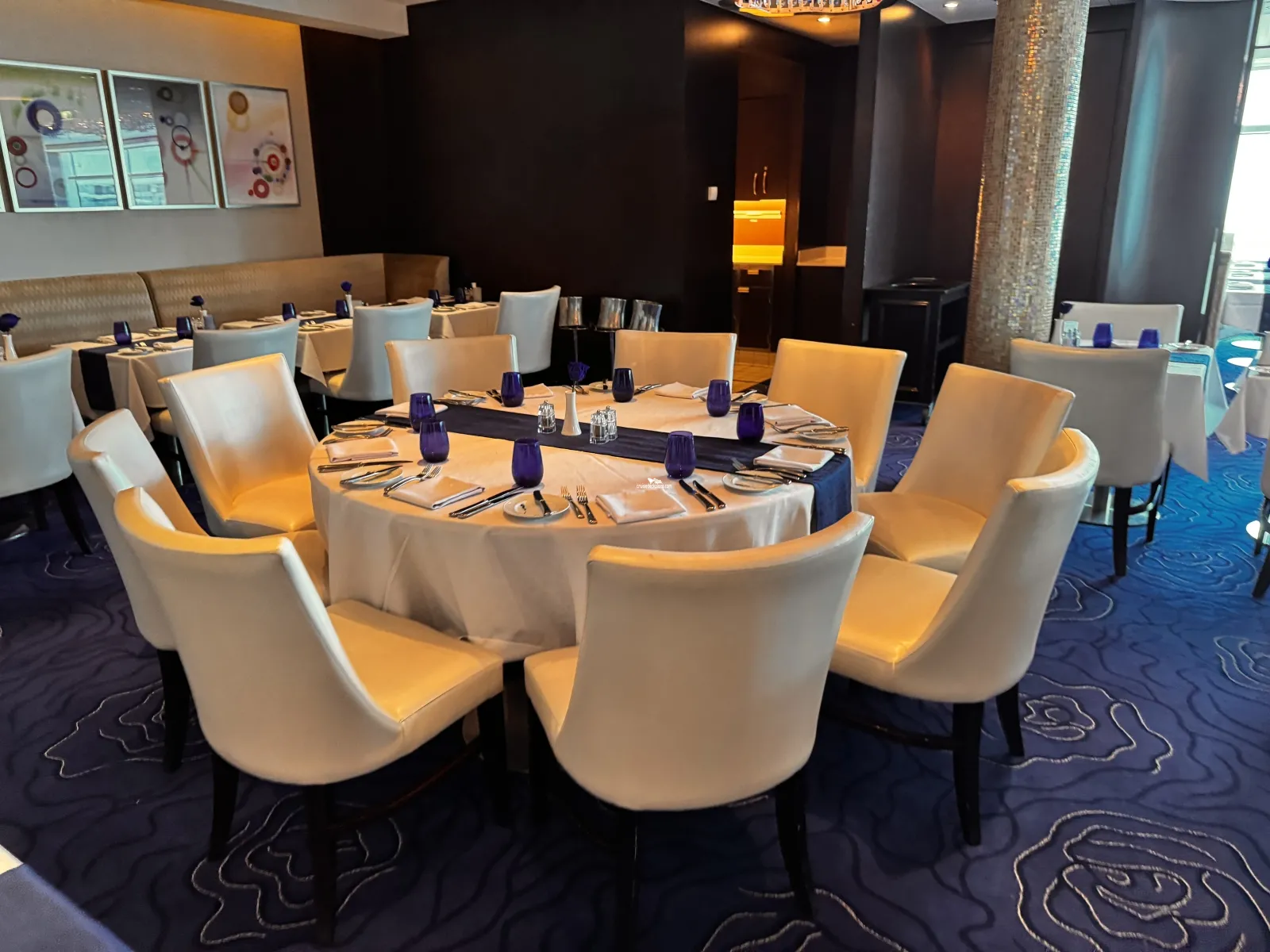 Combines traditional Italian cuisine with American steakhouse dishes, with scenic views over the ship's wake and table-side service. Seats 144 people.Blu