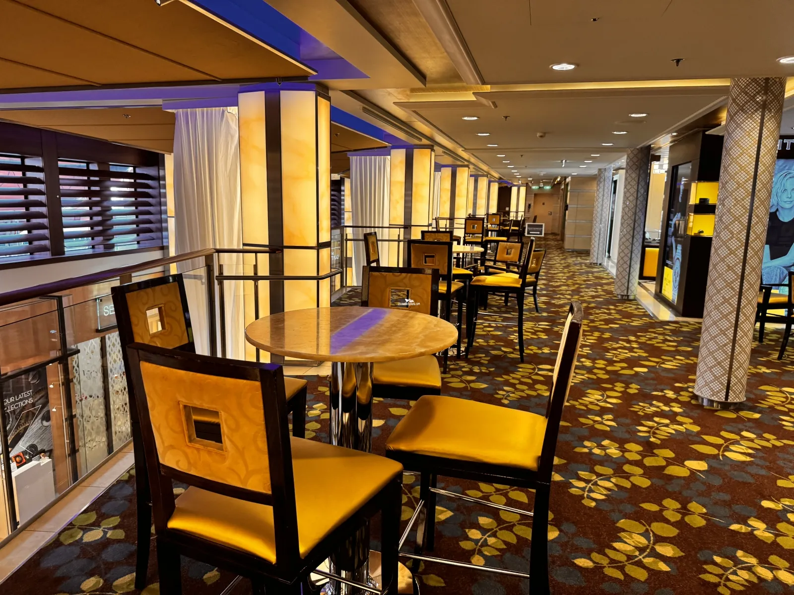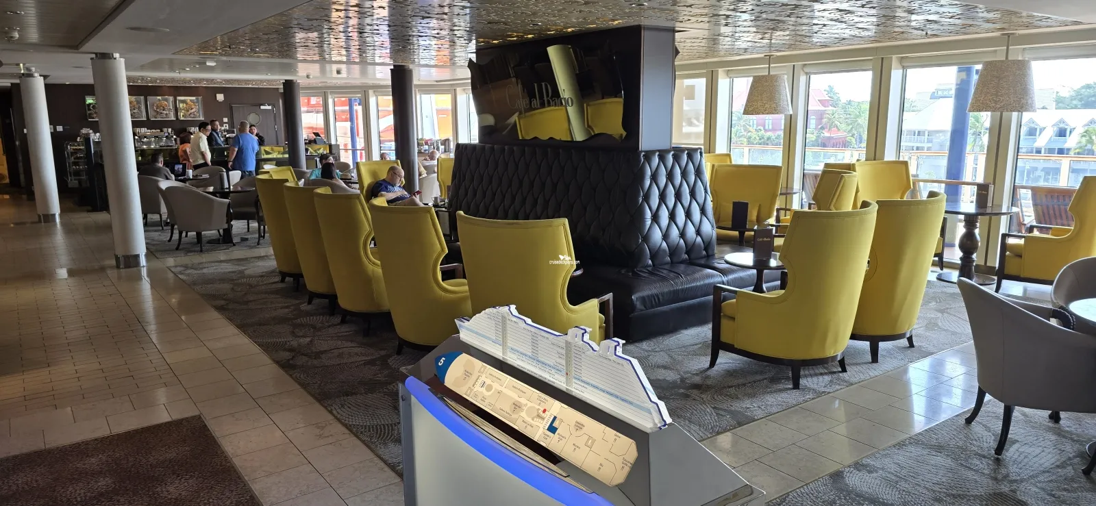 The gateway to the ship's four specialty restaurants with its "dressed for dinner" gathering, is the ideal place for a drink before or after dining featuring live musical entertainment. SeatsMurano