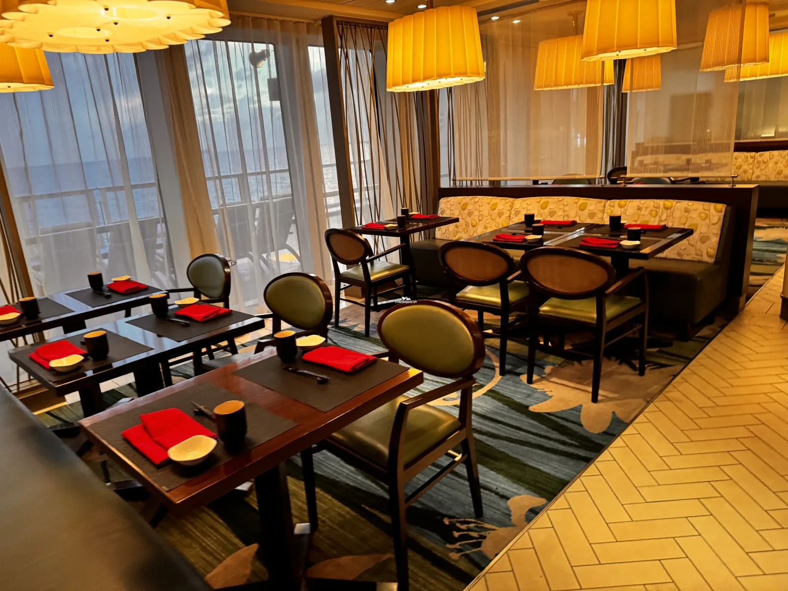 Offering Mediterranean spa style cuisine, popular dishes incorporate clean, crisp, light flavors. Seats 152 people. Open to AquaClass guests only, plus Suites if available.Qsine