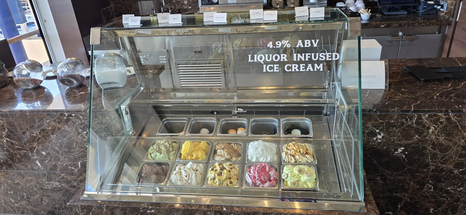 The ship's coffee shop with its comfortable furniture and warm atmosphere making it the ideal place to relax during the day or call in during the evening for a cocktail and dessert. Seats 54 people.Gelateria