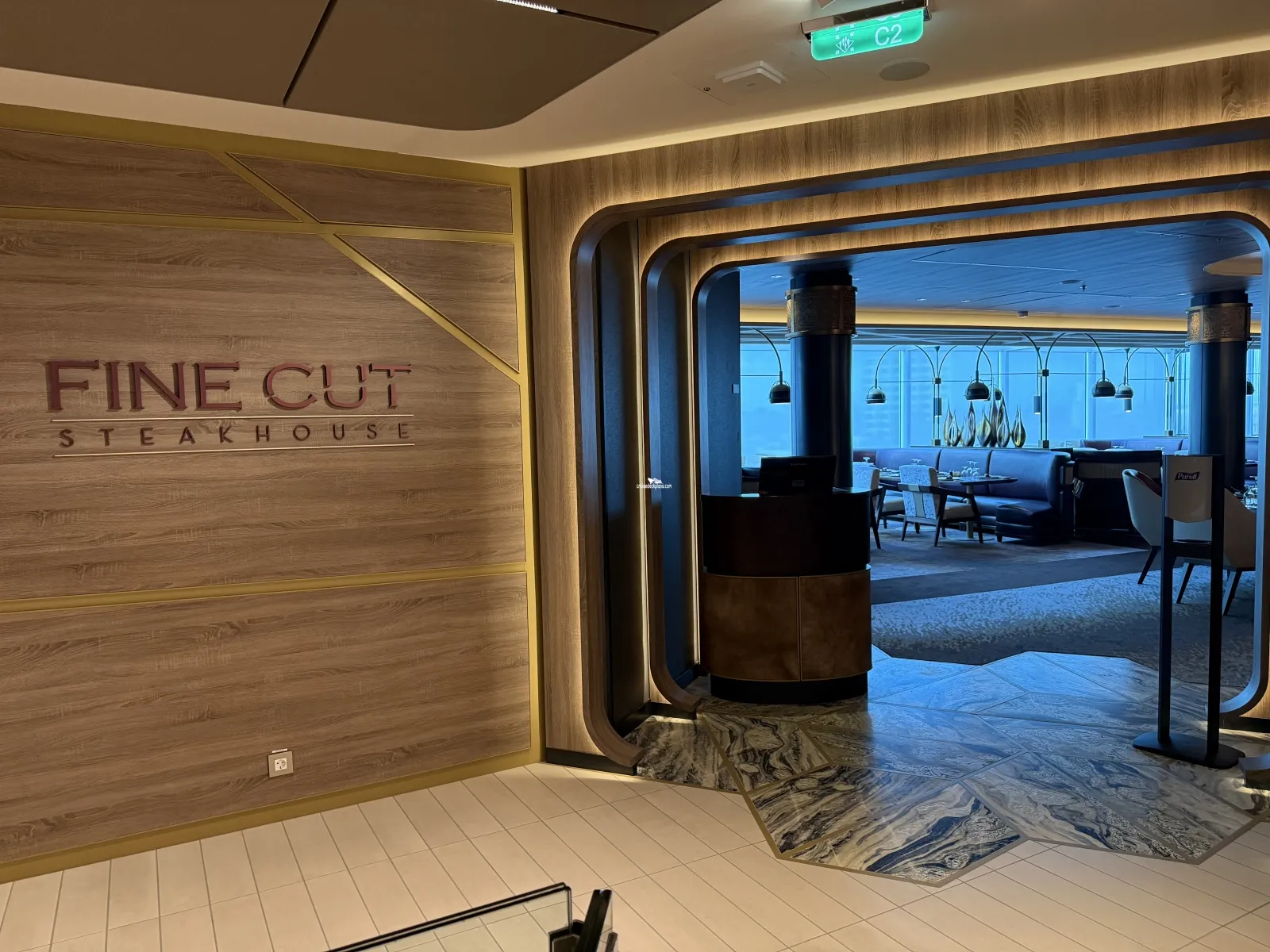 Exclusive venue for AquaClass staterooms. Seats 226 inside and 22 outside. Open for breakfast and dinner. Features clean, crisp flavors of inventive cuisine complimented by sustainable and biodynamic wines.Fine Cut Steakhouse