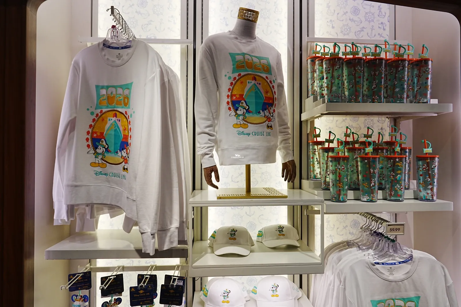 Sells Disney logo clothes, hats, accessories, princess and Minnie mouse dressing up outfits, books, confectionary and snacks, ornaments, pins, games and soft toys.Plutos Corner