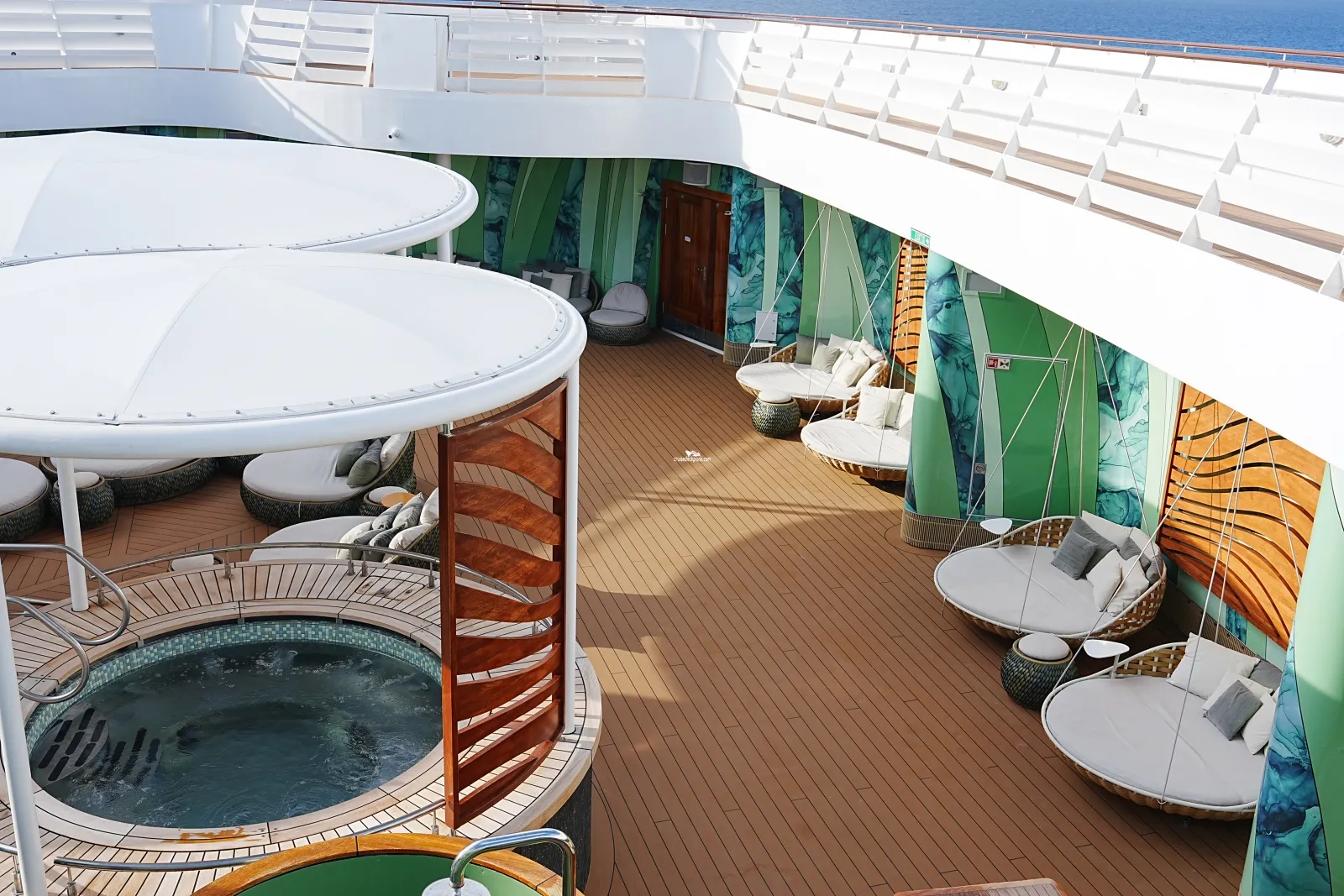 This tool will help you see what is on the deck above and the deck below your stateroom. Don't be surprised by loud chair scraping noise above you.