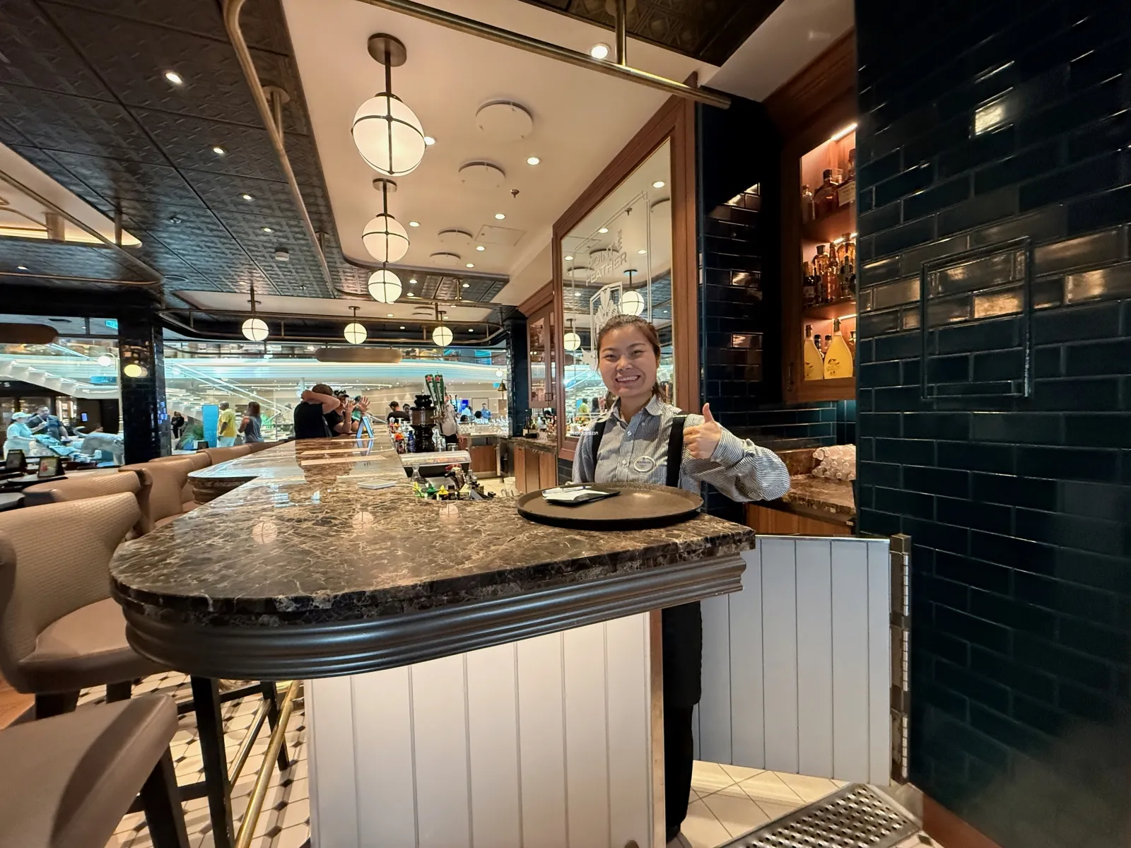 Lobby bar and lounge. This is also an embarkation area.Starbucks