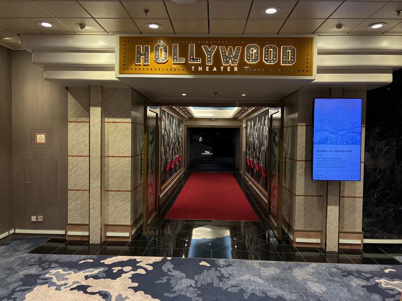 Showcases a range of artwork from well-known artists such as Thomas Kinkade for guests to view or purchase during the ship's on board champagne auction held in Pink's Champagne Bar.Hollywood Theater