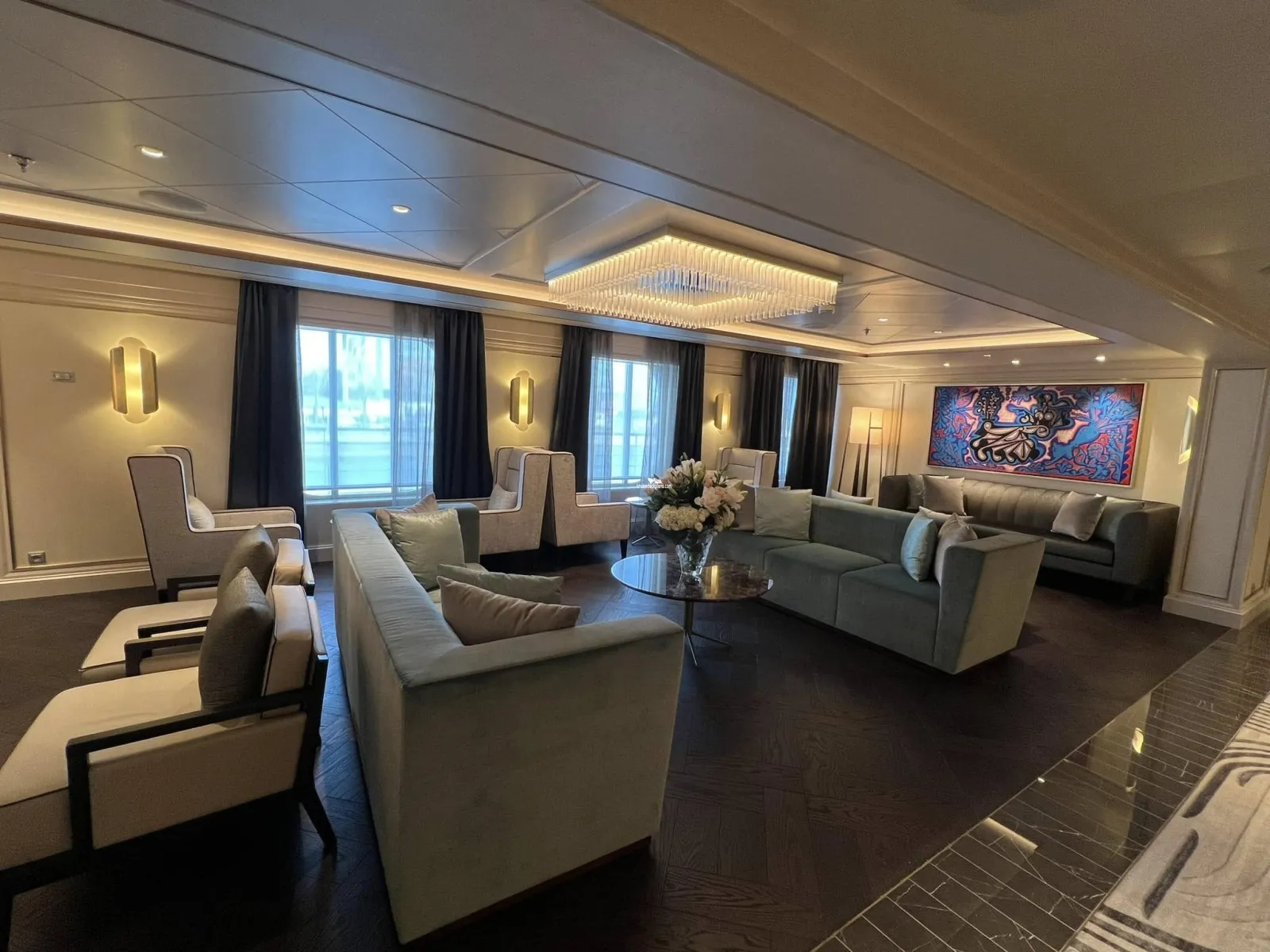 Main show lounge that is 2 levels high. The theater has tiered seating.Atrium