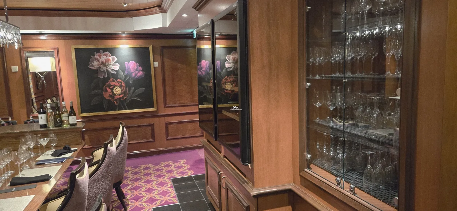 This venue offers a small group of guests a multi-course dinner with wine pairing hosted by the ship's culinary team.Singapore Slings