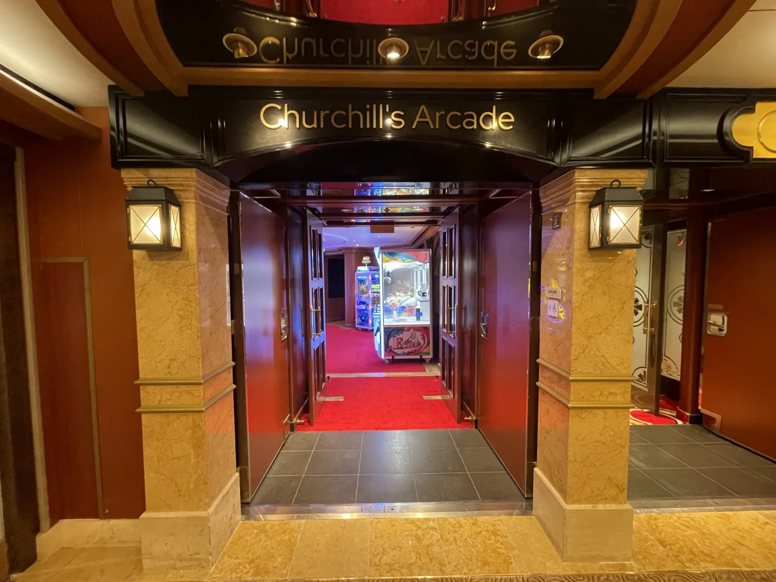 Featuring games tables including roulette, poker, craps and blackjack it also hosts a range of slots and video poker machines as well as the ships daily bingo sessions.Churchills Arcade