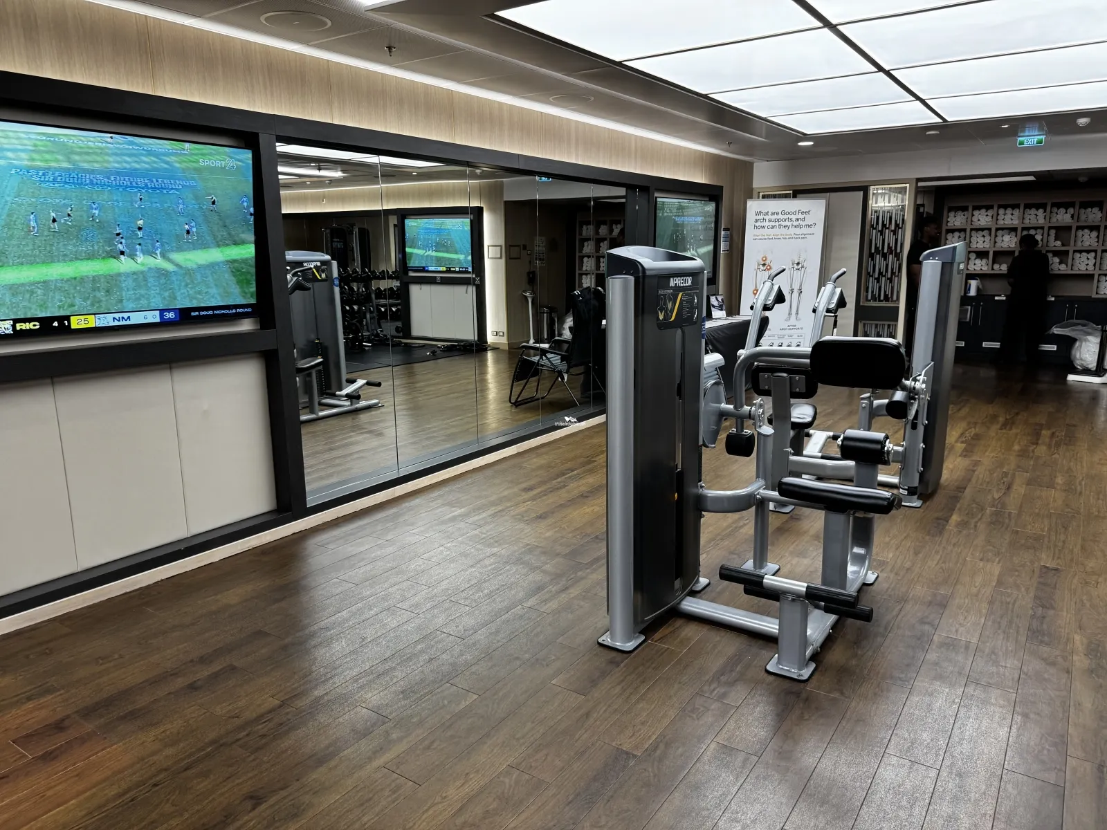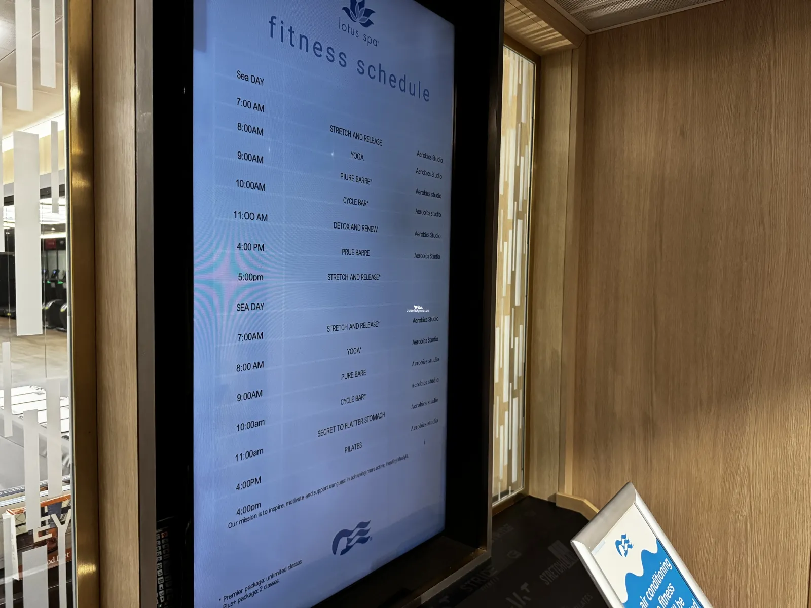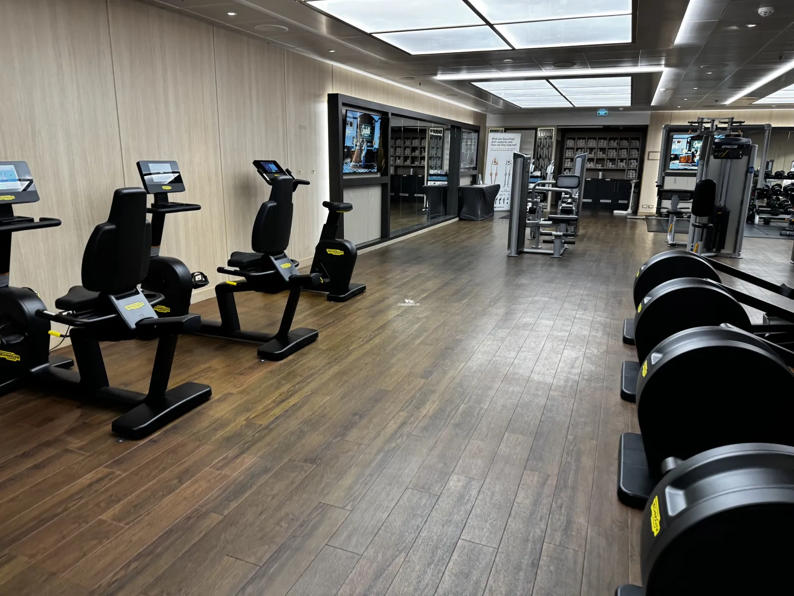 * Aft cabins are below a cabin only area of the deck above and have a separate hallway from the fitness center, therefore should be relatively quiet.