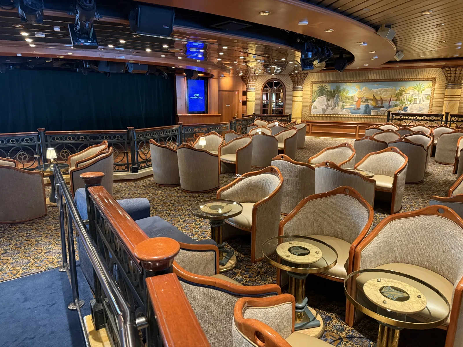 The area surrounding the ship's atrium on the Plaza Deck and hosts a variety of entertainment from musical performances to martini demonstrations and fruit carving.Cabin Check Tool