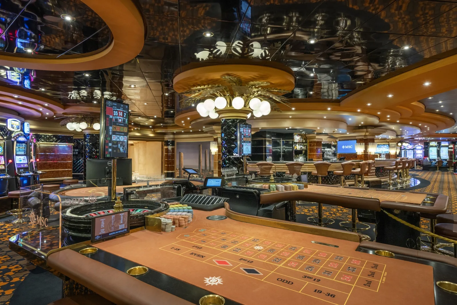 Served by its own bar, black jack, poker, roulette, dice and more are on offer along with an array of high-tech slot machines. Seats 323 people.Phoenician Plaza