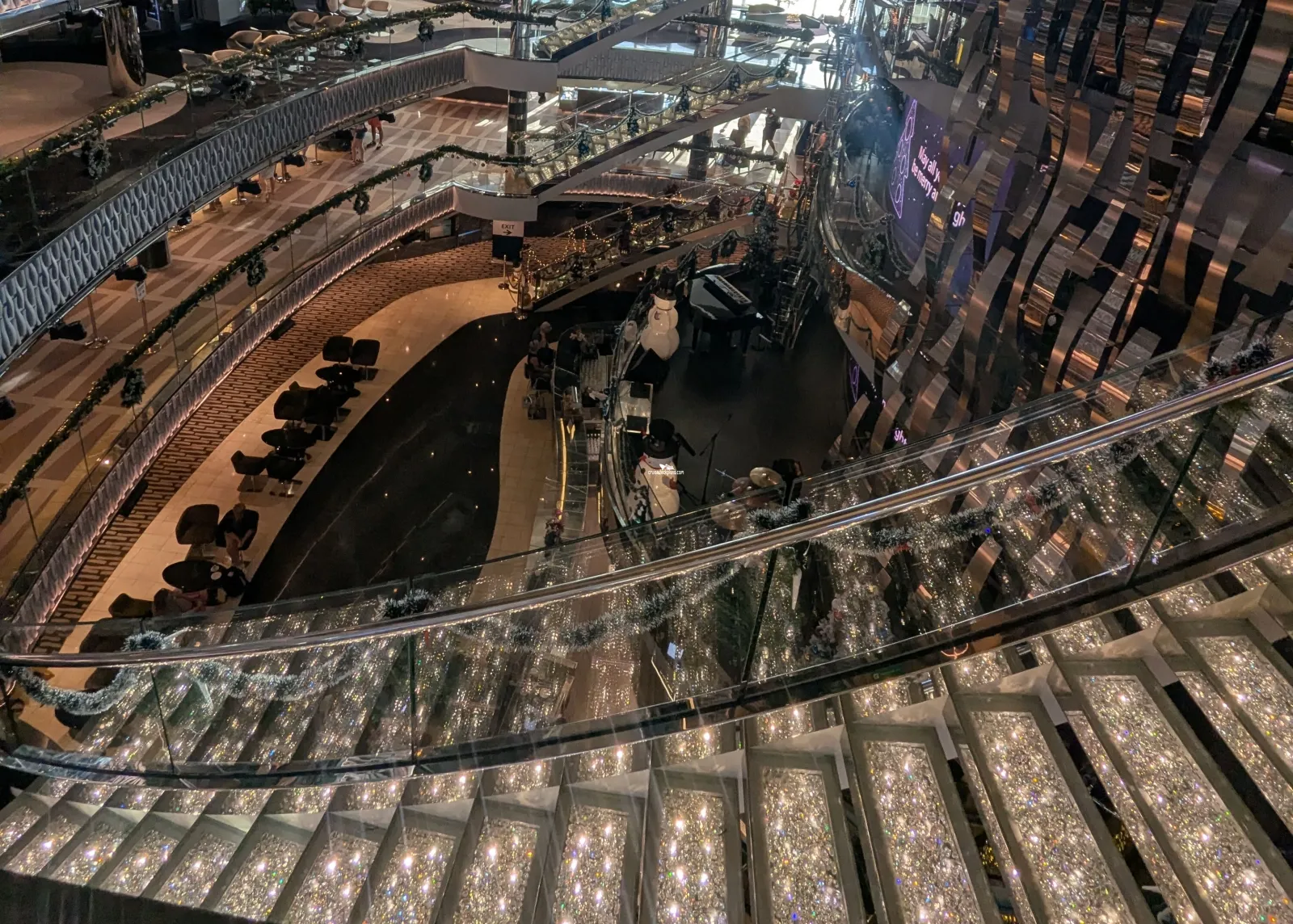Two story night club on aft of ship that handles 400 people.Atrium