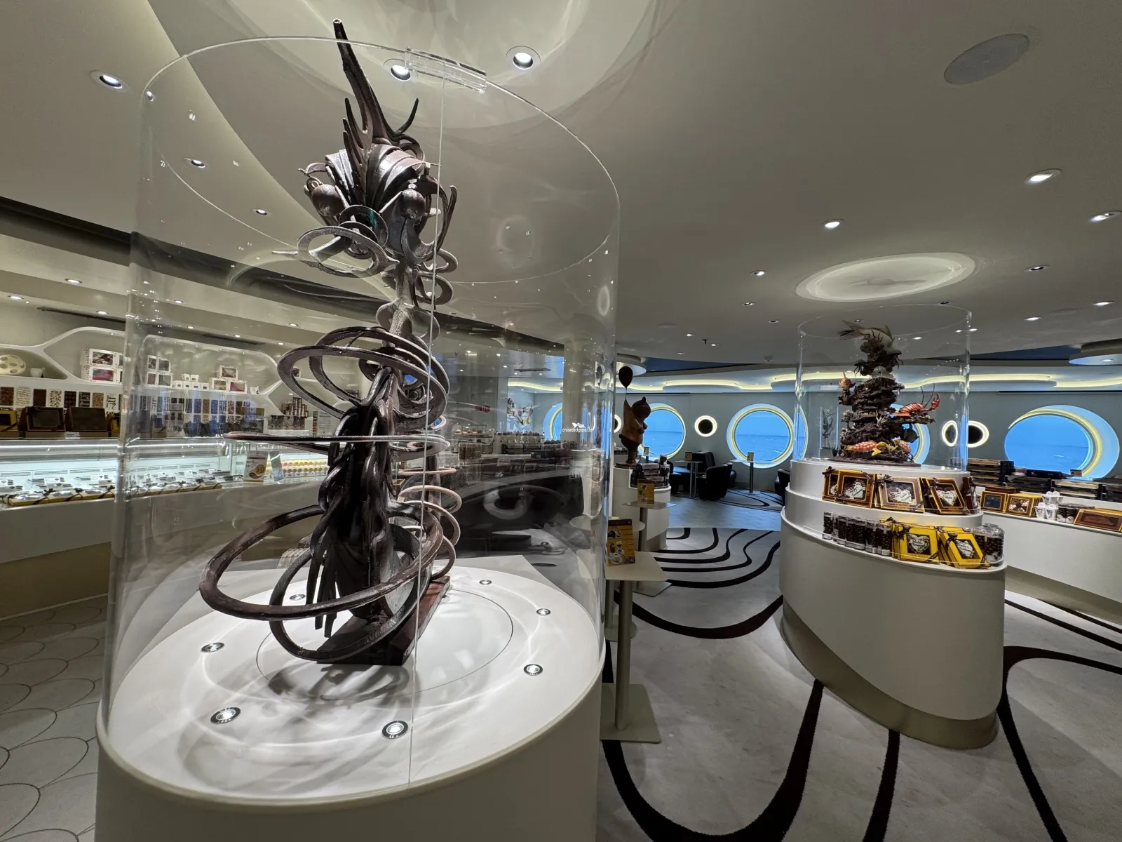 Three level indoor promenade covered by an imposing LED sky screen with entertainment, shops and bars.Jean-Phillippe Chocolate Cafe