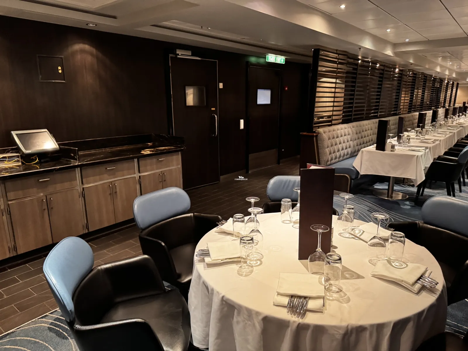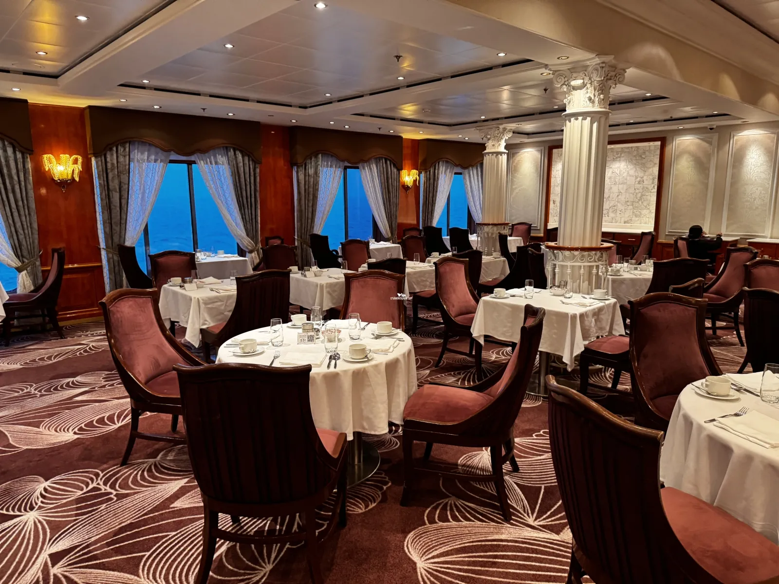 Seats 140 guests within its casual atmosphere and opens from 5.30pm to 10.30pm, with reservations recommended and a cover charge of $15 per guest. This venue and Le Bistro switched places during the May 2016 drydock.Le Bistro French Restaurant