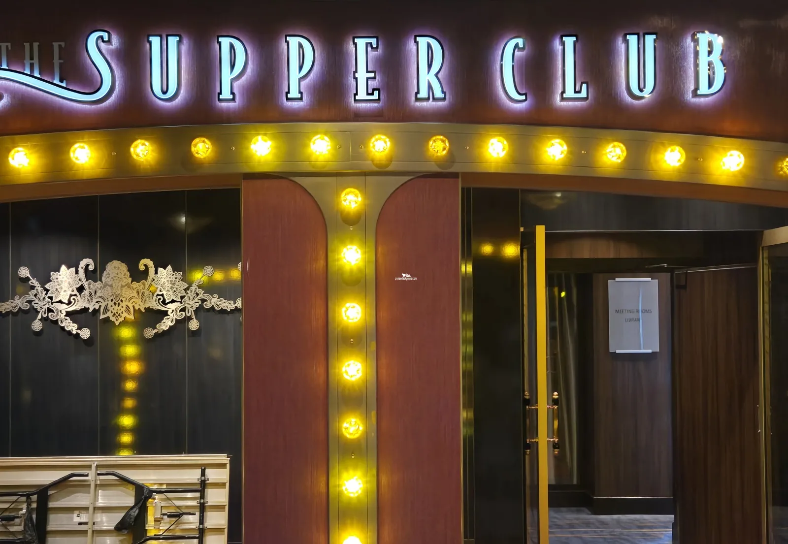Home to Levity Entertainment Group and Howl At The Moon with the room designed to reflect a show lounge format with a small raised stage, dark wooden chairs and tables and brick walls along with a full bar allowing guests to enjoy a drink whilst they catch a show.Supper Club