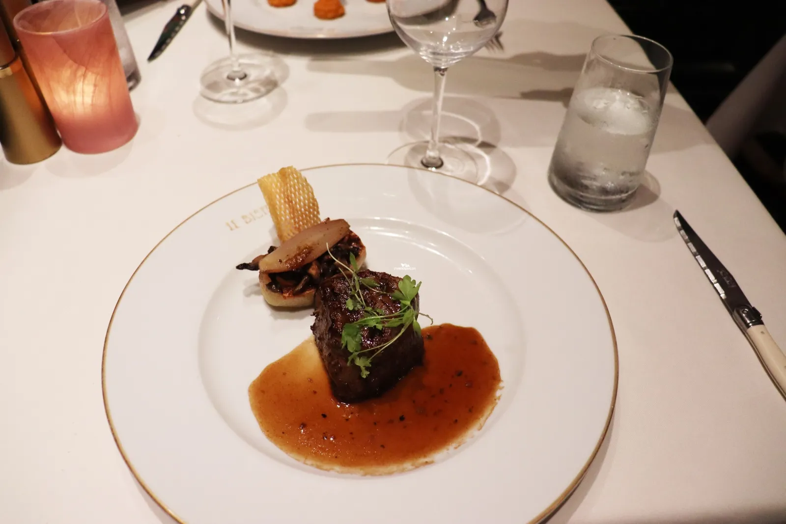 One of Getaway's Main Dining Rooms serving a variety of culinary delights to please every palate. With a menu that changes daily, guests can enjoy a different culinary experience with each visit. With floor-to-ceiling ocean views enhancing the contemporary cuisine and décor which features architectural curves, floor-to-ceiling velvet curtains and colourful stained glass, the dining option is included in the cruise fare and is open for dinner only. The menu is similar to that served in Savor with one or two different dishes.Le Bistro French Restaurant