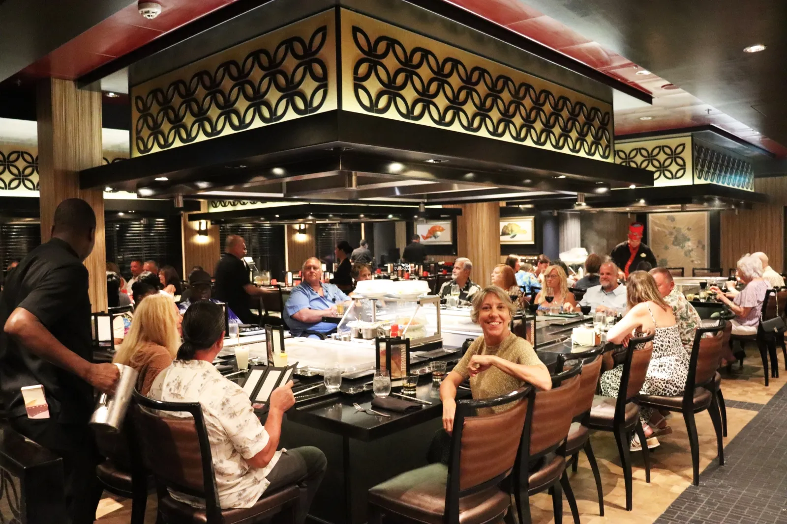 Has a cover charge of $25 per person (reservations recommended). It offers a hibachi-style dinner and show and has a tranquil ambiance delivered from its traditional Japanese rock garden featuring bamboo plants and bonsai trees. Seating 96 guests around 12 flat top grills the chef's showcase their knife skills whilst cooking exhibition style Japanese cuisine.Mixx Bar