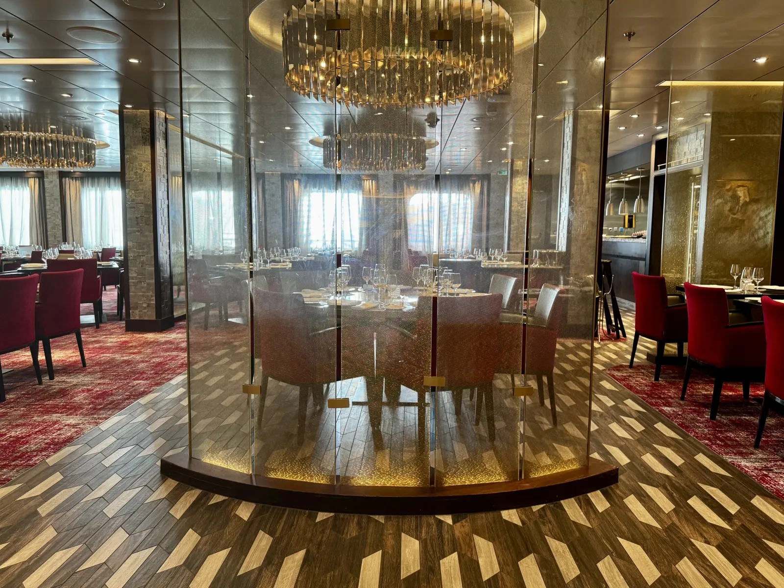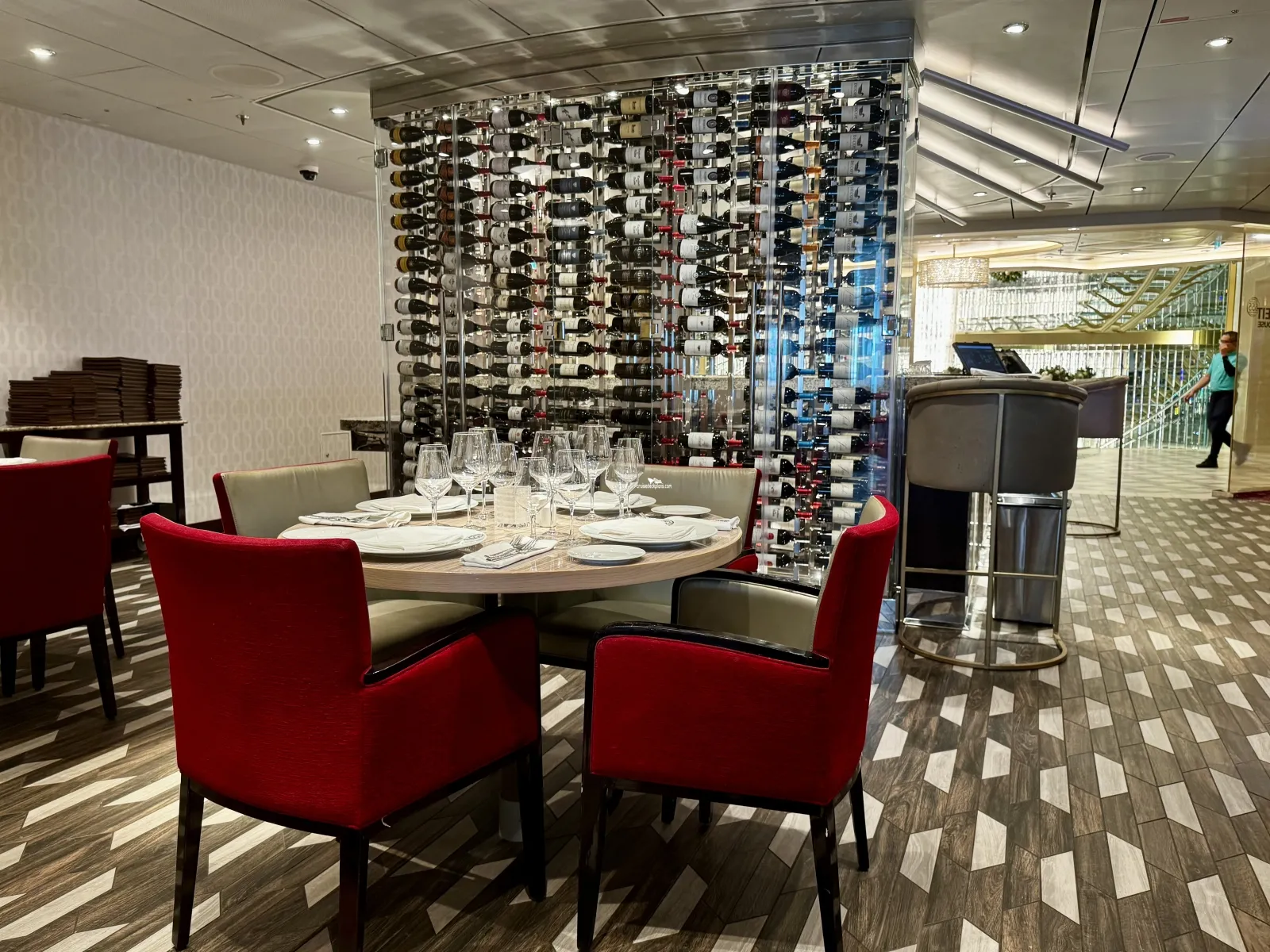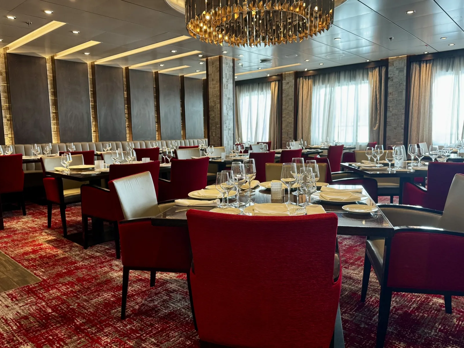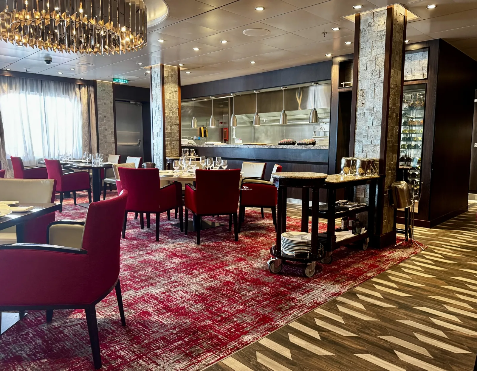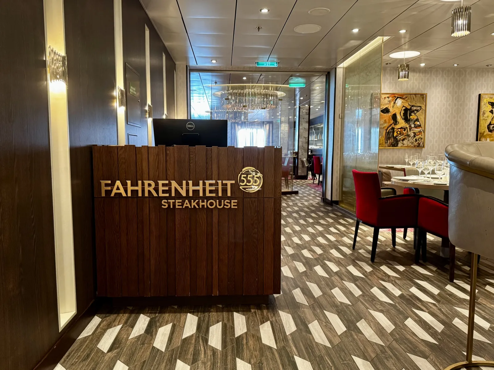 Two level main restaurant on aft of decks 6 and deck 7. Sit-down waiter service open nightly for dinner.Fahrenheit 555 Steakhouse