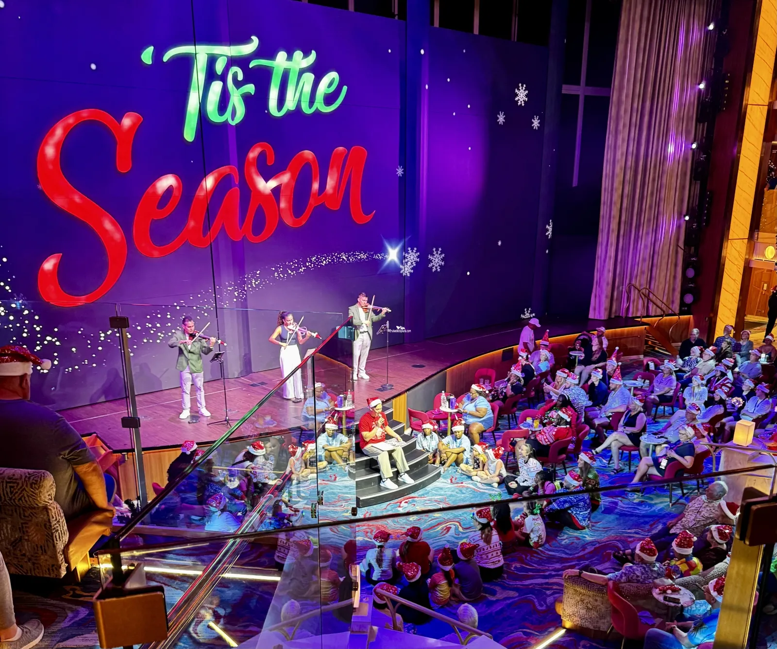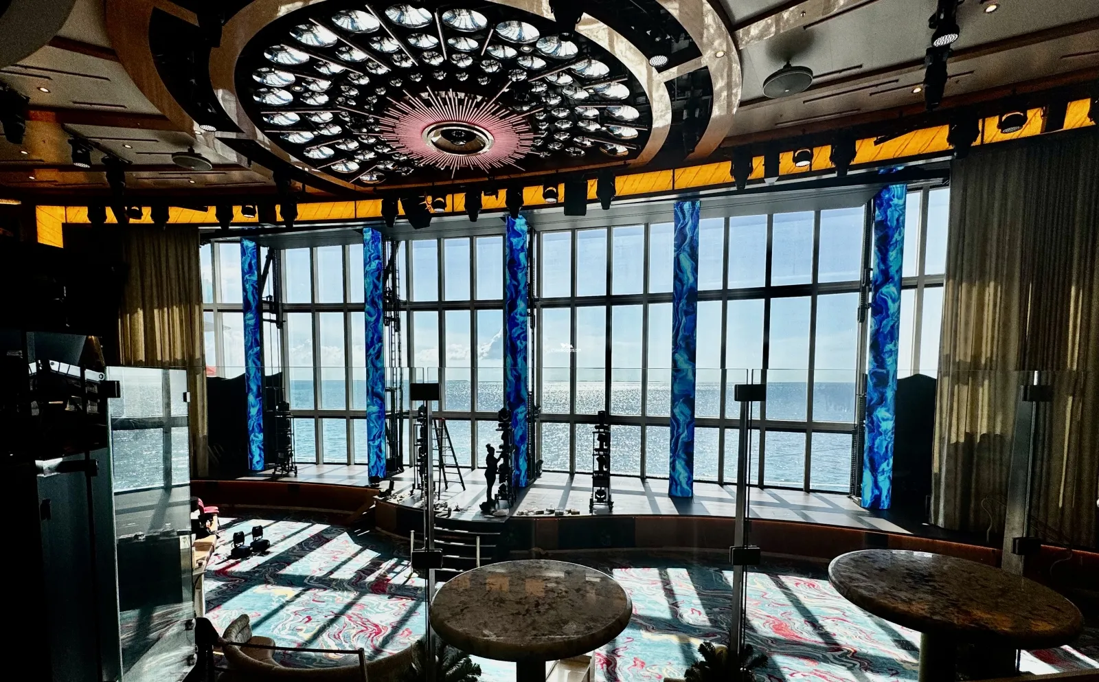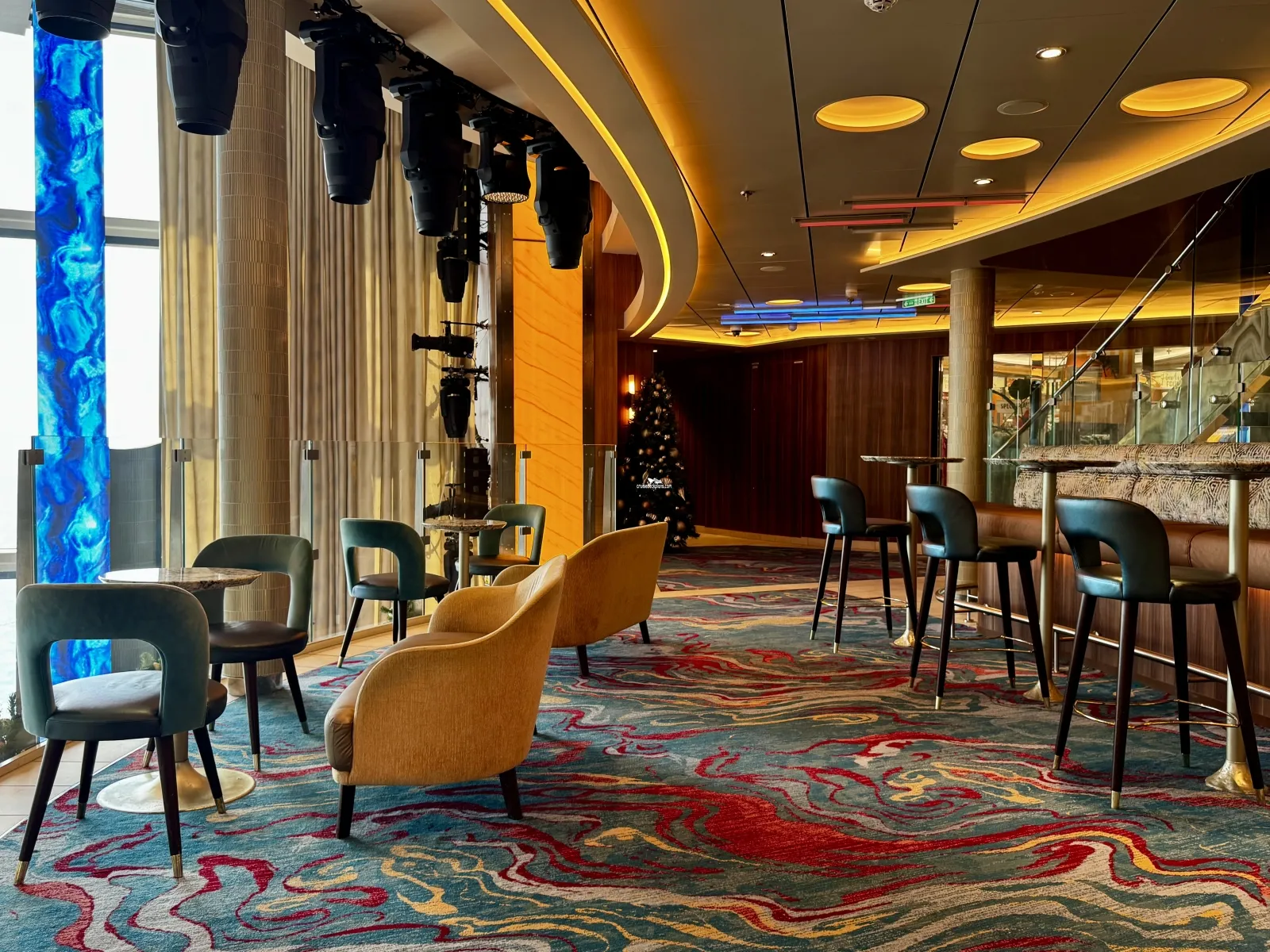 Grand Central Atrium with its own bar on Deck 6. Atrium spans 3 floors (Deck 6, 7 and 8). There is seating area on Deck 6 that feature Live entertainment certain hours of the day and night.Mardi Gras Theater