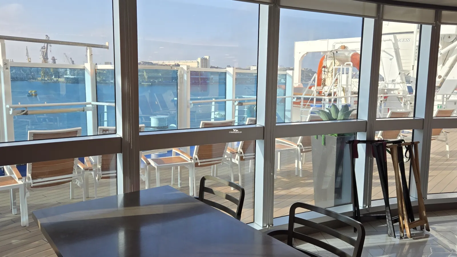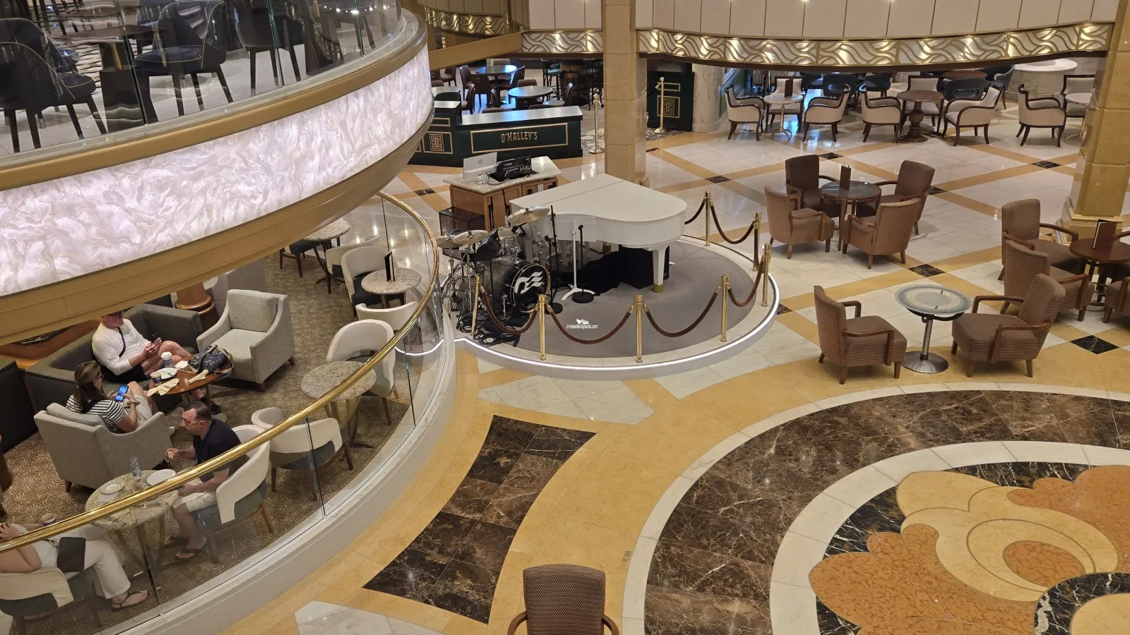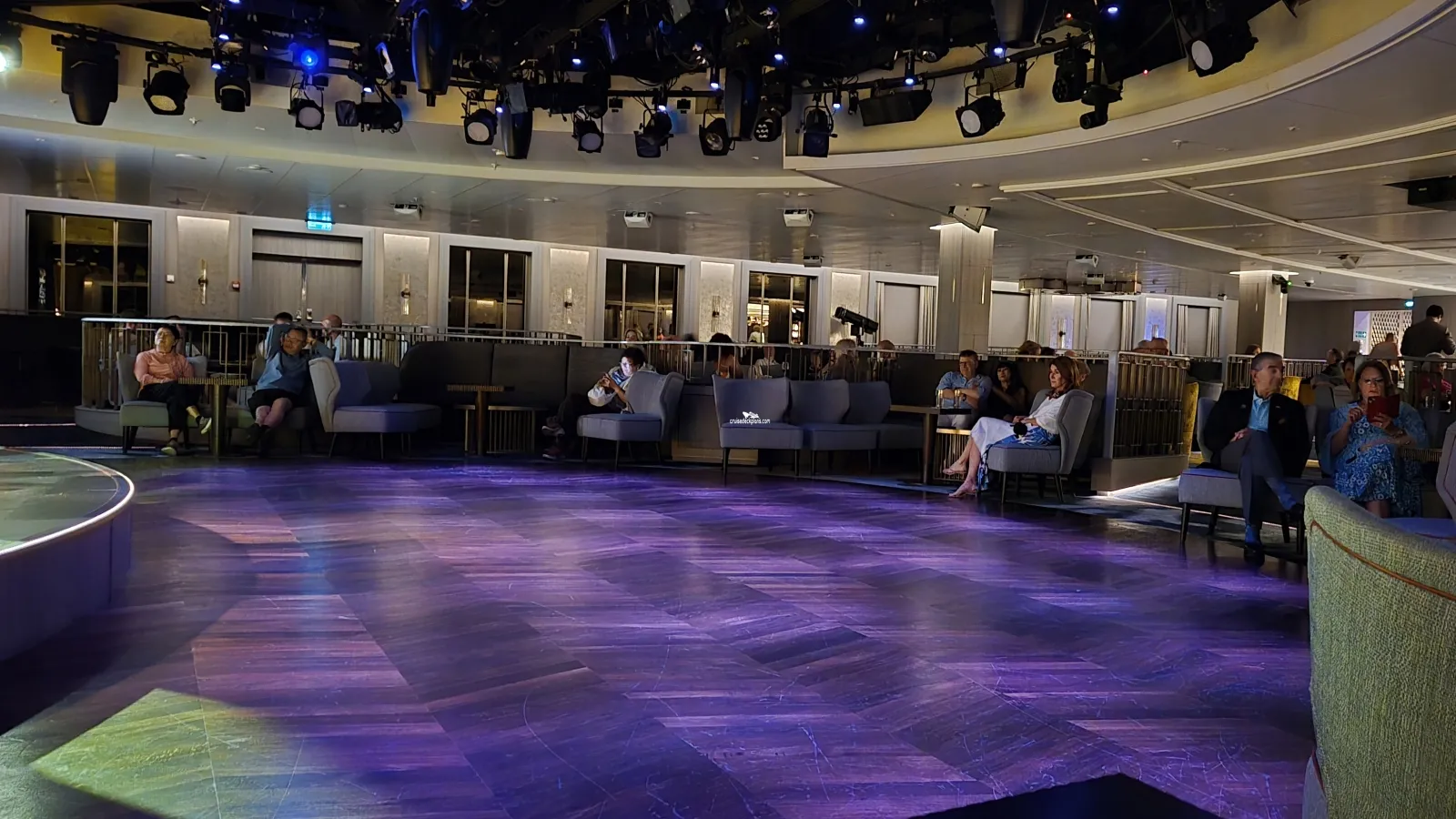 Features the ship's production shows, entertainers, enrichment programmes (such as the Scholarship@Sea) and movies during the day.Outside Promenade
