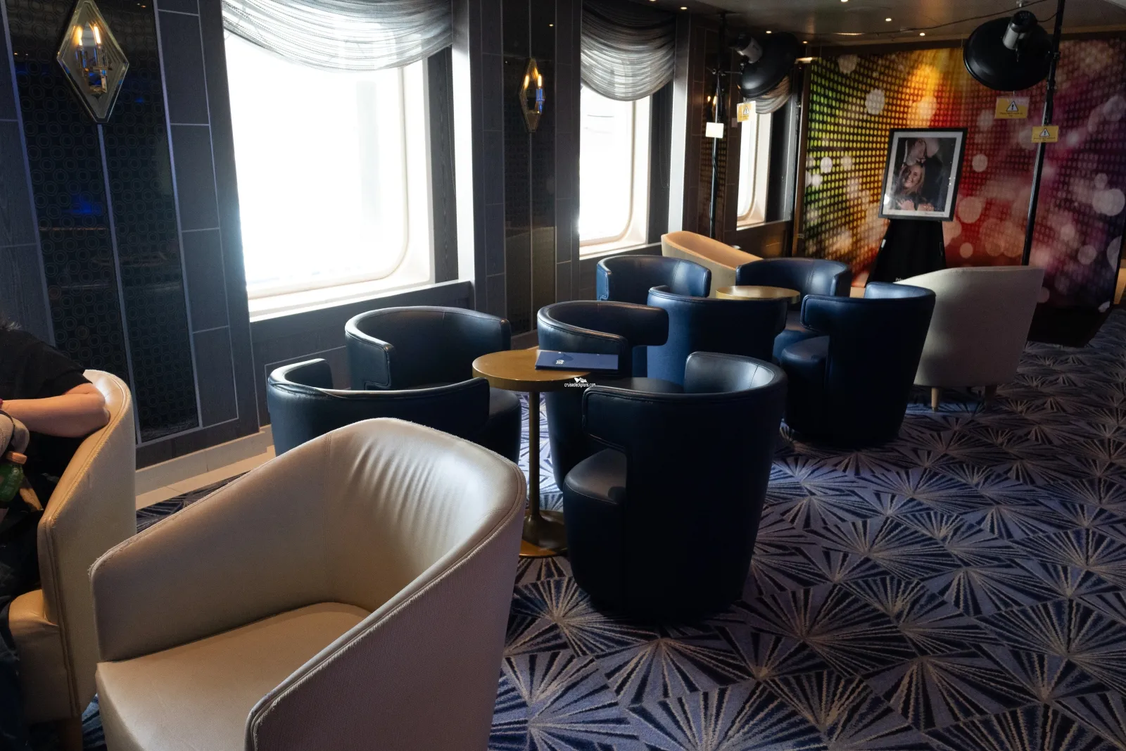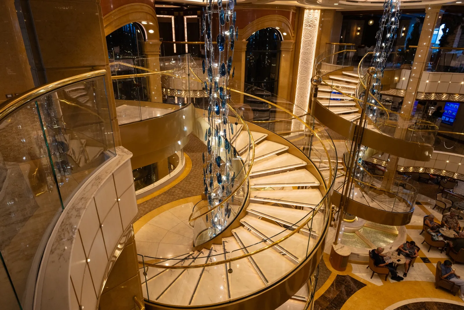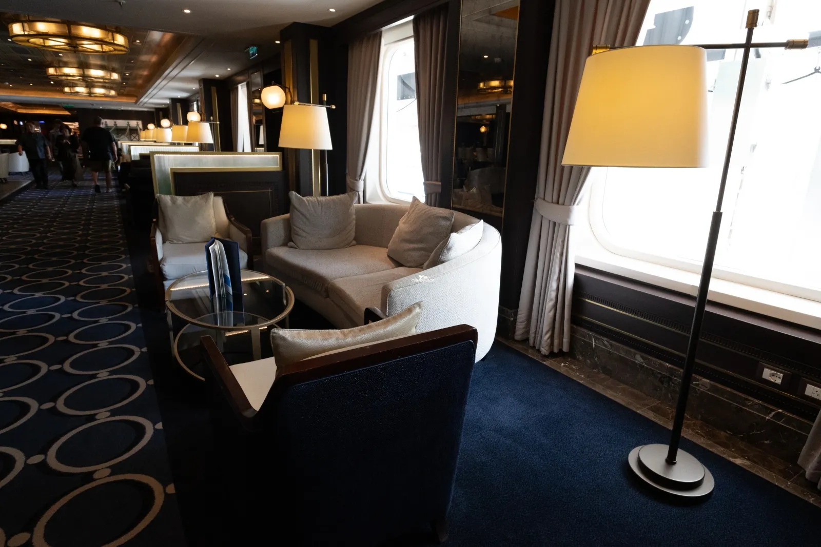 Features the ship's production shows, entertainers, enrichment programmes (such as the Scholarship@Sea) and movies during the day.Outside Promenade