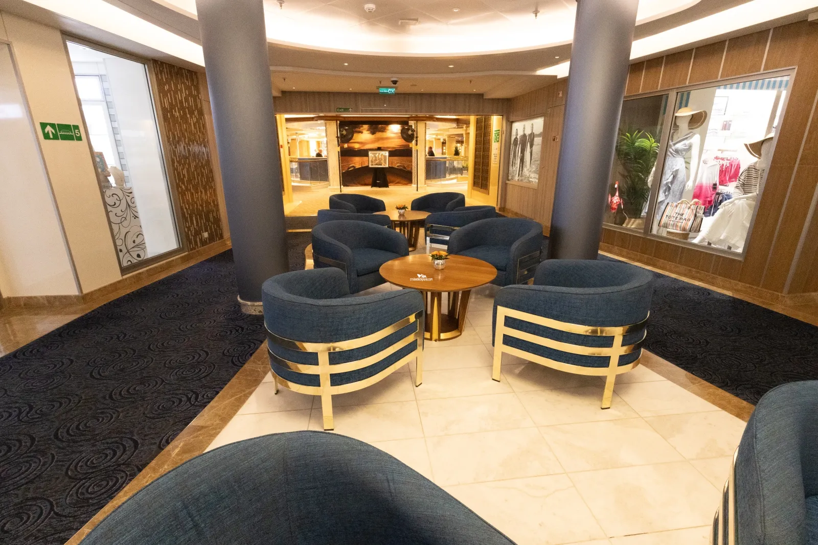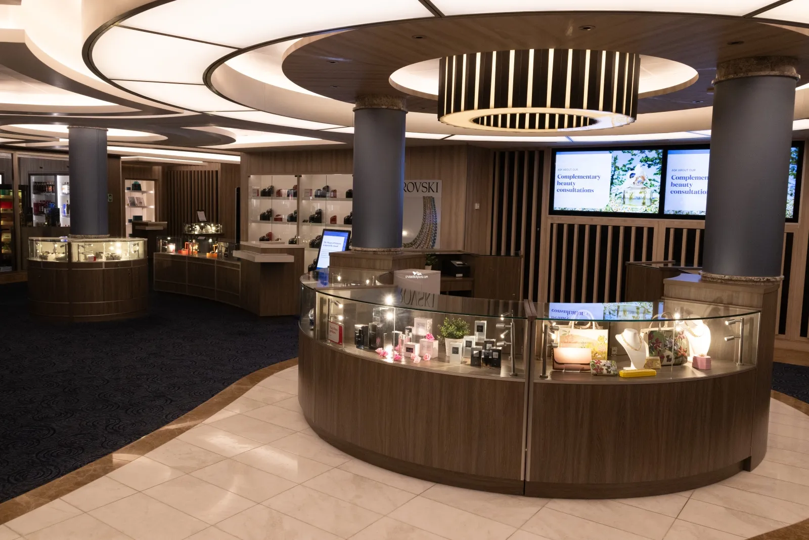 A TV studio where guests get the chance to experience what it feels like to be in the audience during the filming of TV shows. Princess' "The Wake" show will be filmed daily and broadcast to staterooms along with audience participation game shows which will also be broadcast to rooms the following day.The Shops of Princess