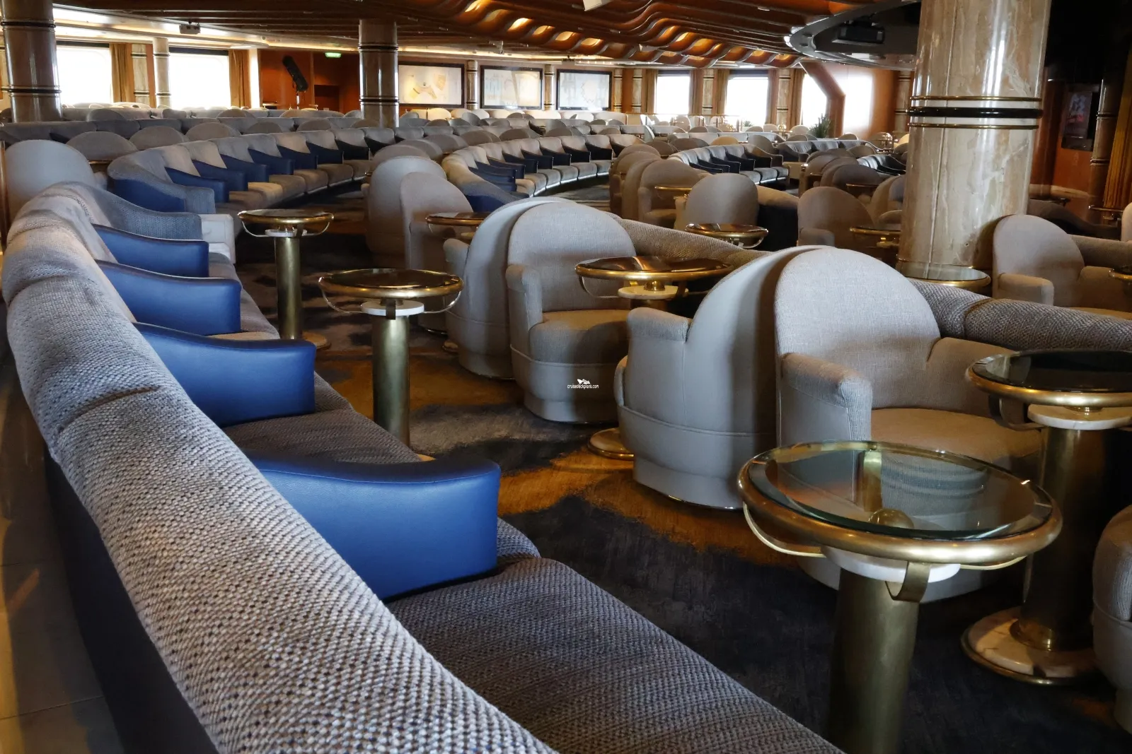 A large room with its own bar and dance floor and features acts from ventriloquists to comedians.Shore Excursion Desk