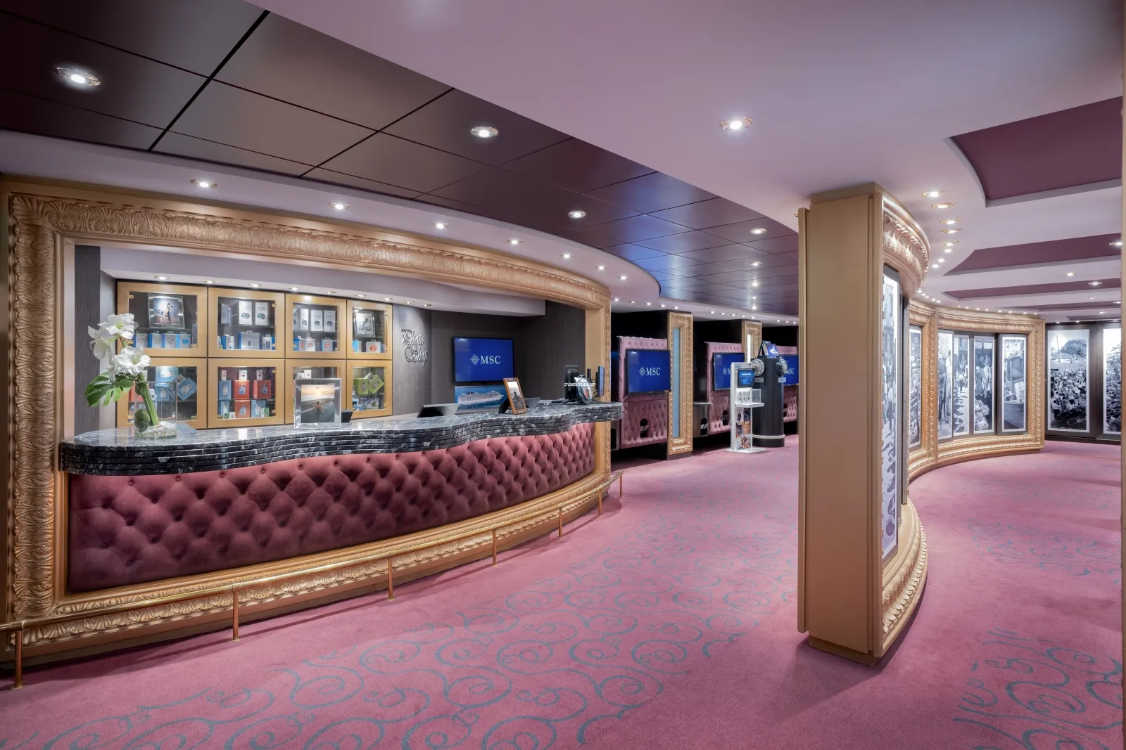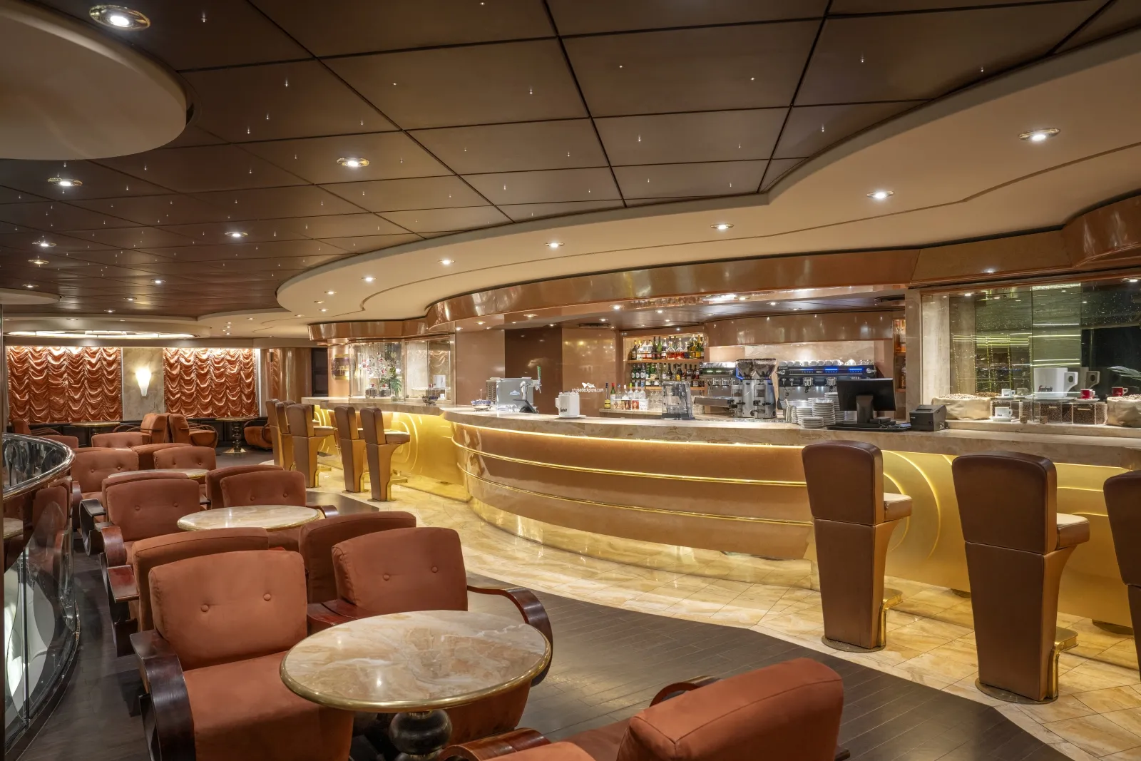 The ship's additional fee coffee bar with rich brown wood and red marble décor. With seating for 58, guests can choose from a selection of hot and cold coffee and flavoured hot chocolate drinks from Zabe (a mini-cappuccino with sweet Zabaione sauce) to Mokaccino Aromatizzato.Fashion Bijoux
