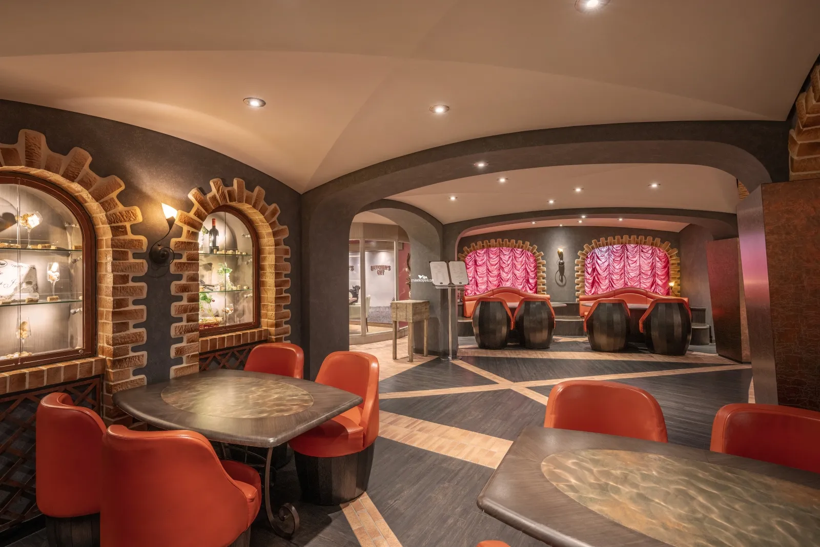 Seats just over 1600 guests with unobstructed views and futuristic interior features which interact with the stage and lighting to create individual visual effects. The Broadway-style entertainment offers a total of six shows, all of which are new productions.El Dorado Piano Bar