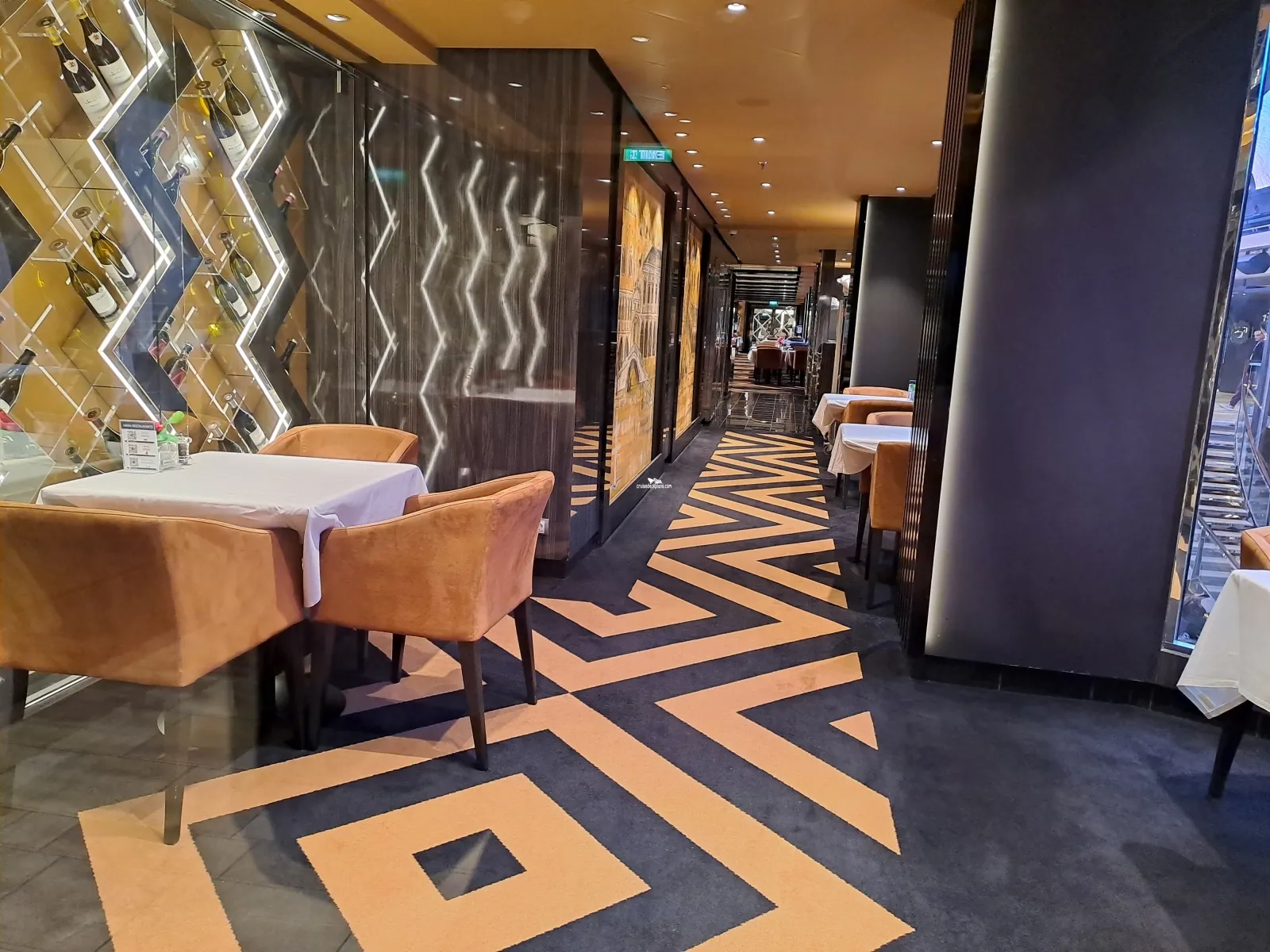 Enjoy live games, quizzes and talent contests all aired live throughout the ship. Also enjoy cocktails, beer, wine and soft drinks. Seats 101 guests in 3,659 square foot area.Il Campo Restaurant