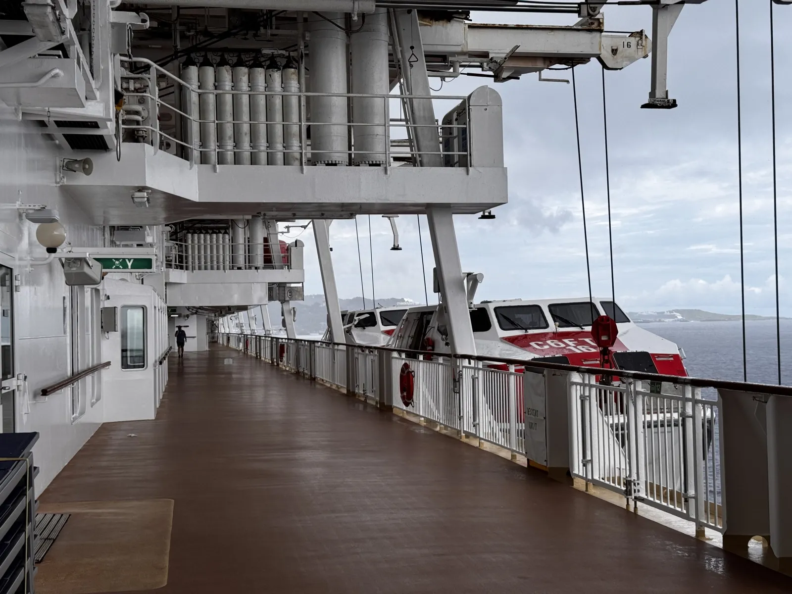 Outdoor promenade deck that circles the ship and is great for walking.Tradewinds Galleria